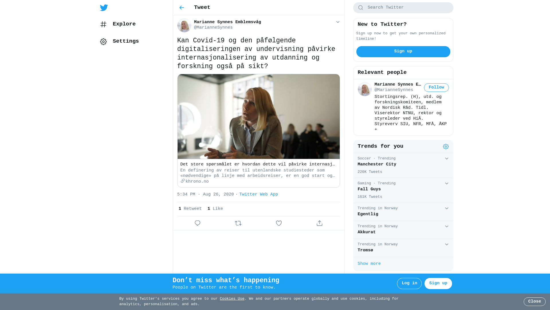En definering av reiser til utenlandske studiesteder som «nødvendige» på linje med arbeidsreiser, er en god start og avgjørende for å understreke viktigheten av internasjonalt samarbeid innen utdanning og forskning, skriver stortingsrepresentant Marianne Synnes Emblemsvåg.
