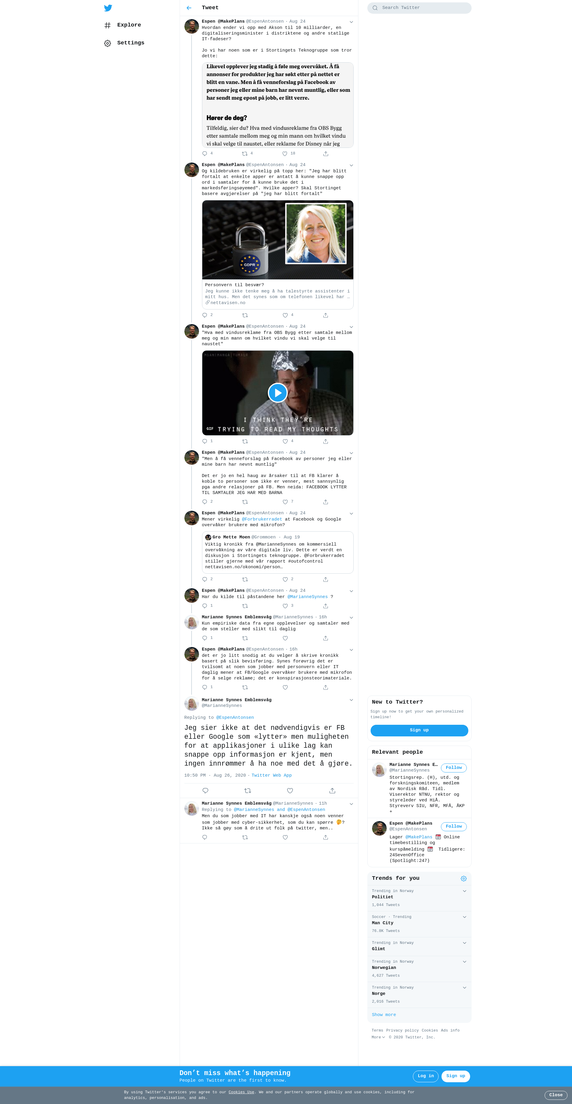@EspenAntonsen Jeg sier ikke at det nødvendigvis er FB eller Google som «lytter» men muligheten for at applikasjoner i ulike lag kan snappe opp informasjon er kjent, men ingen innrømmer å ha noe med det å gjøre.