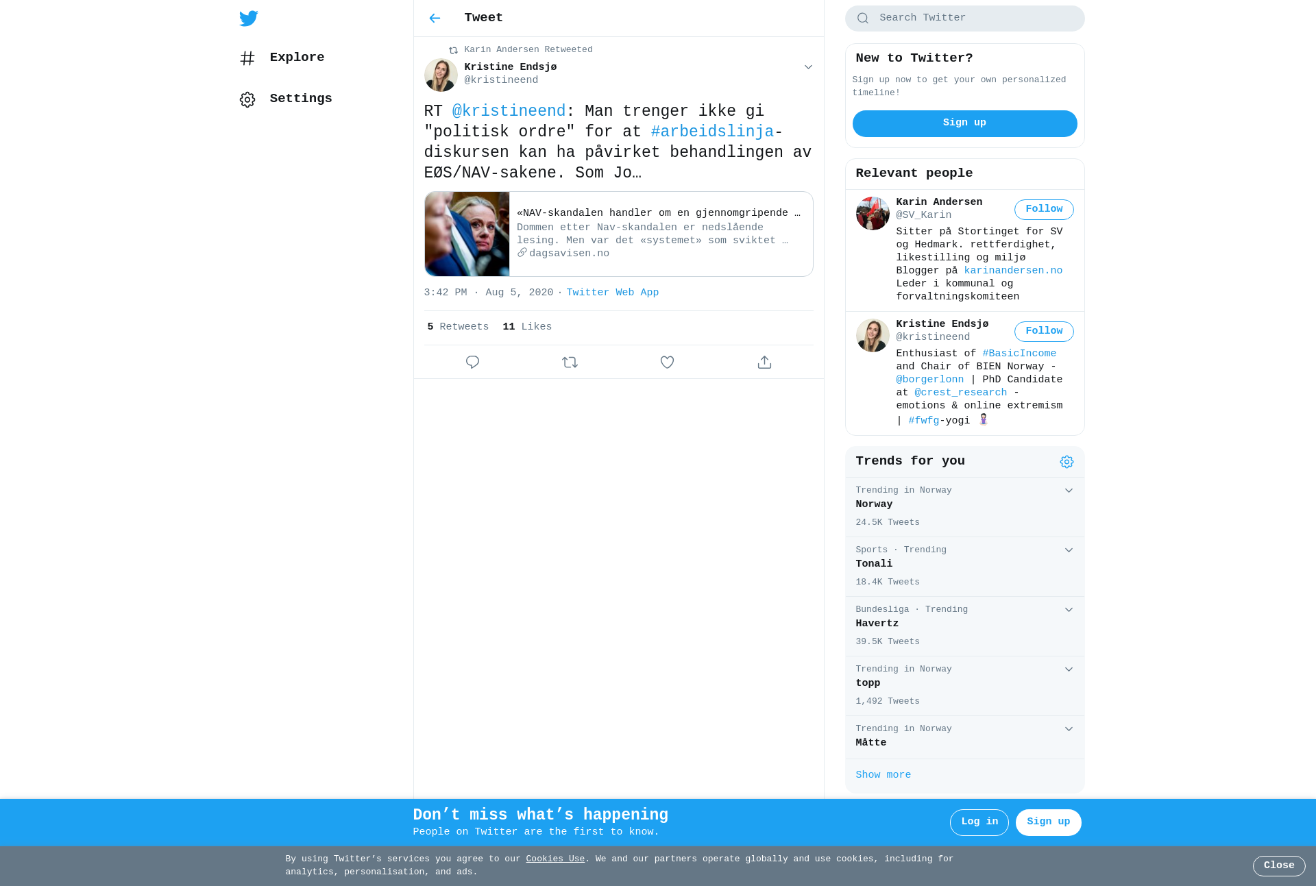 RT @kristineend: Man trenger ikke gi "politisk ordre" for at #arbeidslinja-diskursen kan ha påvirket behandlingen av EØS/NAV-sakene. Som Johnsen skriver her: "«Systemet» fanget opp de politiske signalene som har kommet fra begge sider av det politiske spekteret." #dax18 https://t.co/rnqtbv9AYq
