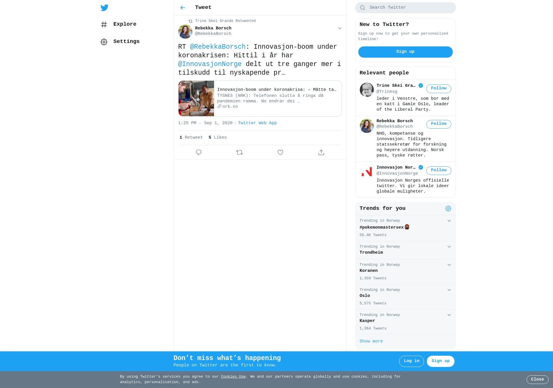 RT @RebekkaBorsch: Innovasjon-boom under koronakrisen: Hittil i år har @InnovasjonNorge delt ut tre ganger mer i tilskudd til nyskapende prosjekter enn på samme tid i fjor. #innovasjon https://t.co/hVdz6KnURr