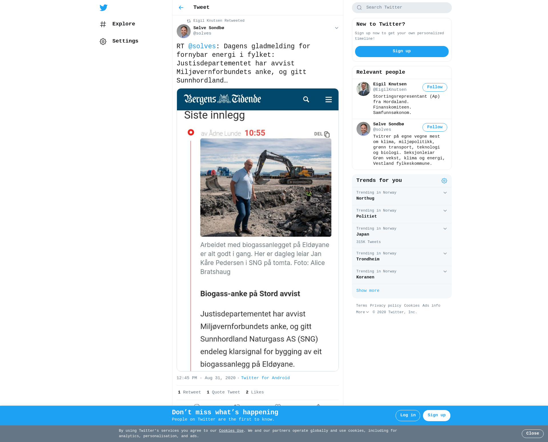 RT @solves: Dagens gladmelding for fornybar energi i fylket: Justisdepartementet har avvist Miljøvernforbundets anke, og gitt Sunnhordland Naturgass AS (SNG) endeleg klarsignal for bygging av eit biogassanlegg på Eldøyane. #biogass https://t.co/E8xCMs7jqE https://t.co/ldZkQiFy5n