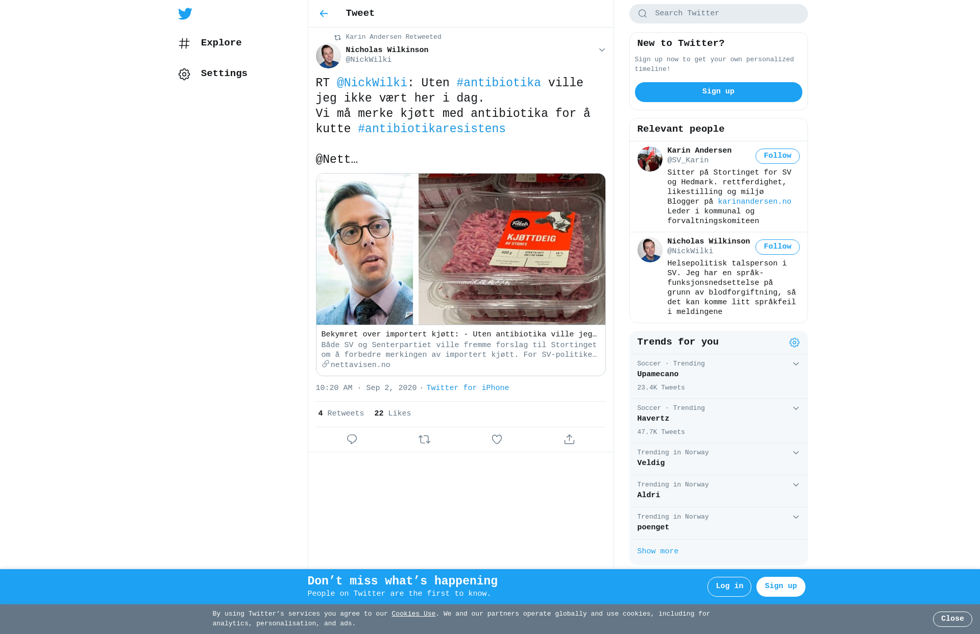 RT @NickWilki: Uten #antibiotika ville jeg ikke vært her i dag. Vi må merke kjøtt med antibiotika for å kutte #antibiotikaresistens @Nett…