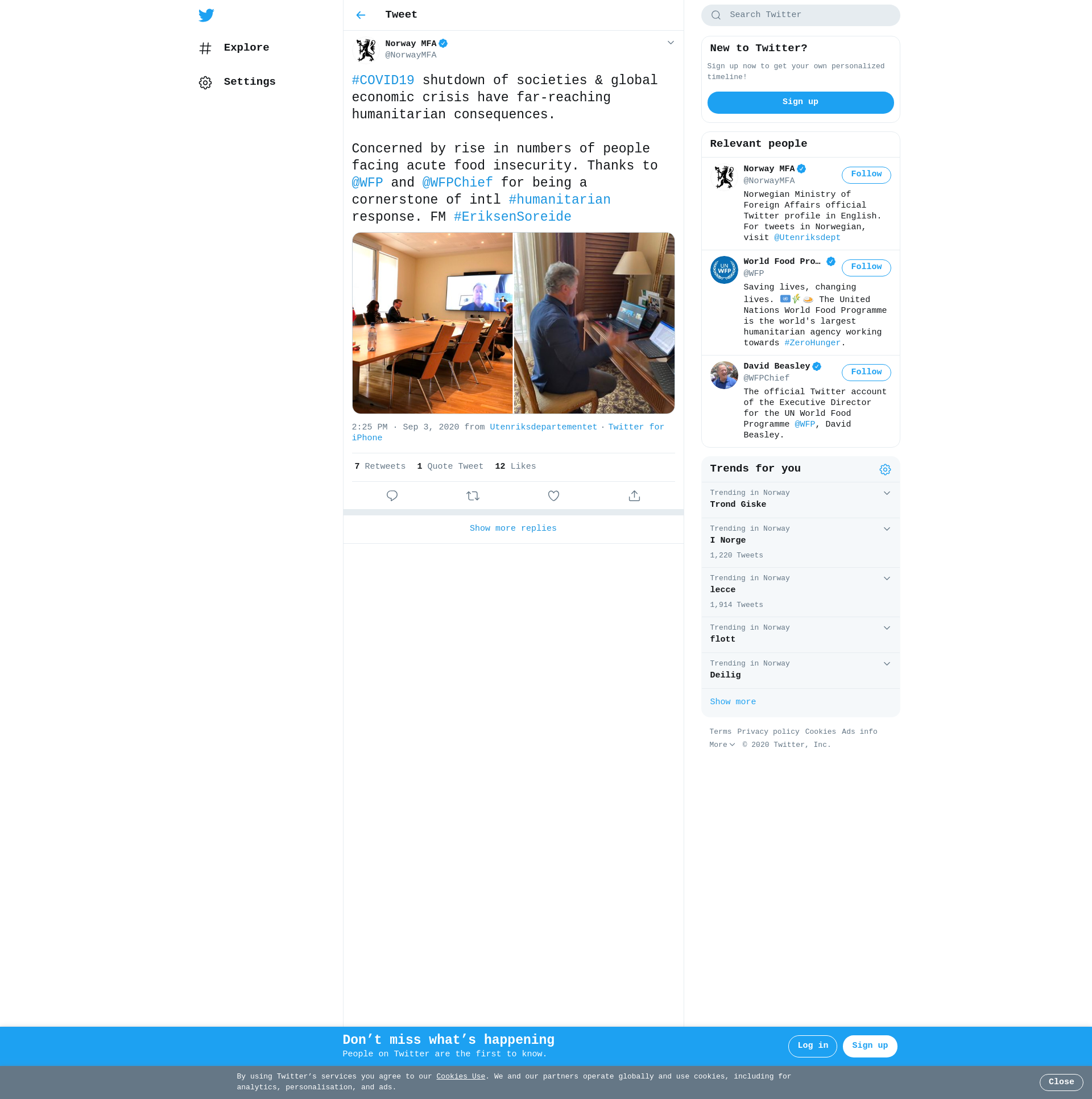 Concerned by rise in numbers of people facing acute food insecurity. Thanks to @WFP and @WFPChief for being a cornerstone of intl #humanitarian response. FM #EriksenSoreide https://t.co/9BHlYKBANW