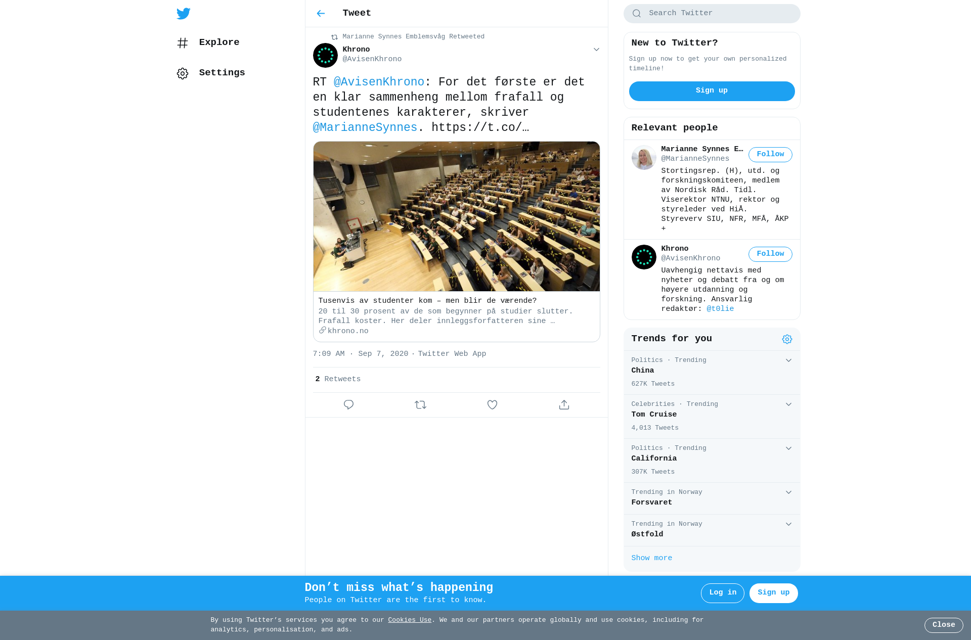 RT @AvisenKhrono: For det første er det en klar sammenheng mellom frafall og studentenes karakterer, skriver @MarianneSynnes. https://t.co/RDDt9mAk6c