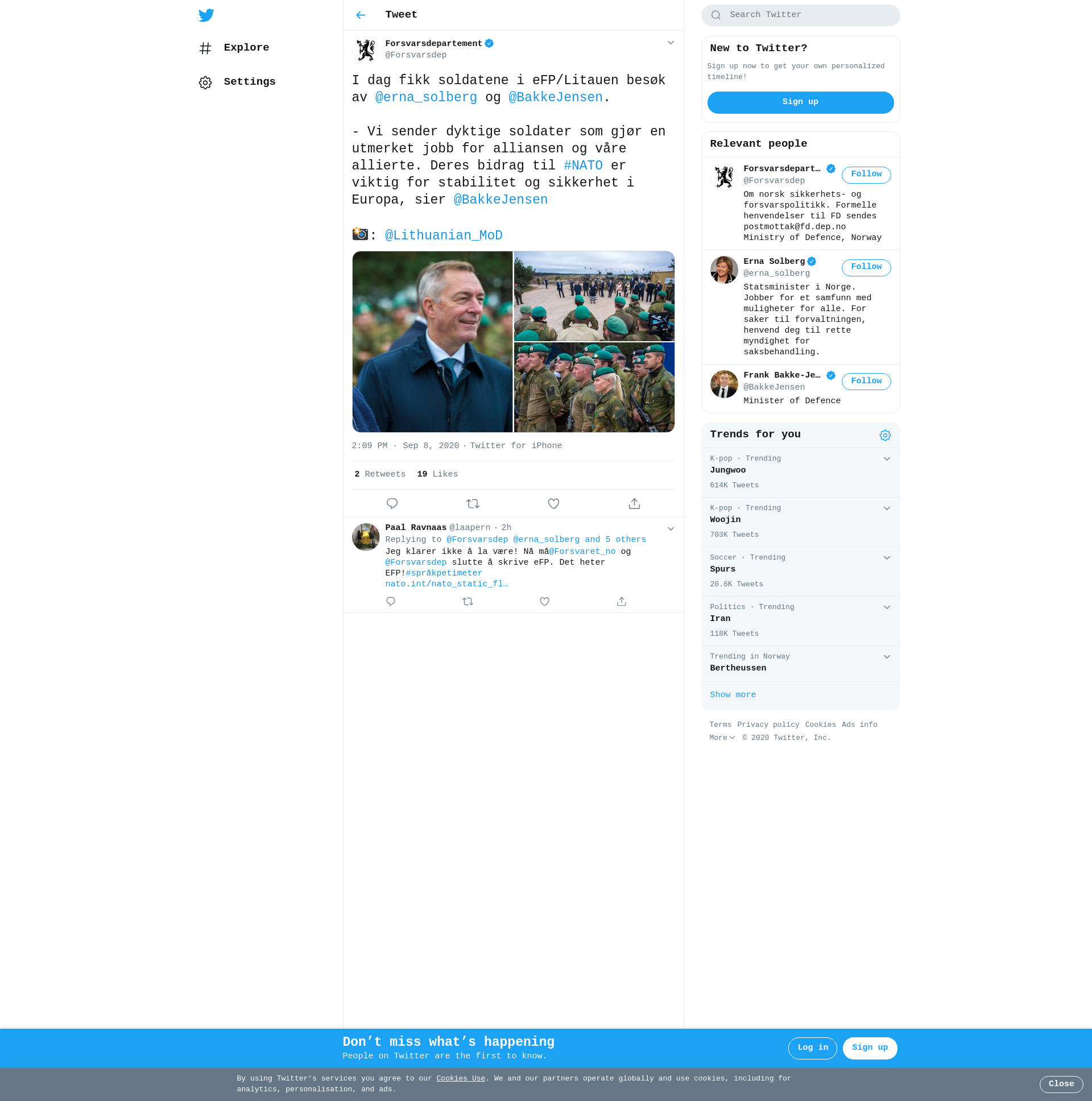 - Vi sender dyktige soldater som gjør en utmerket jobb for alliansen og våre allierte. Deres bidrag til #NATO er viktig for stabilitet og sikkerhet i Europa, sier @BakkeJensen