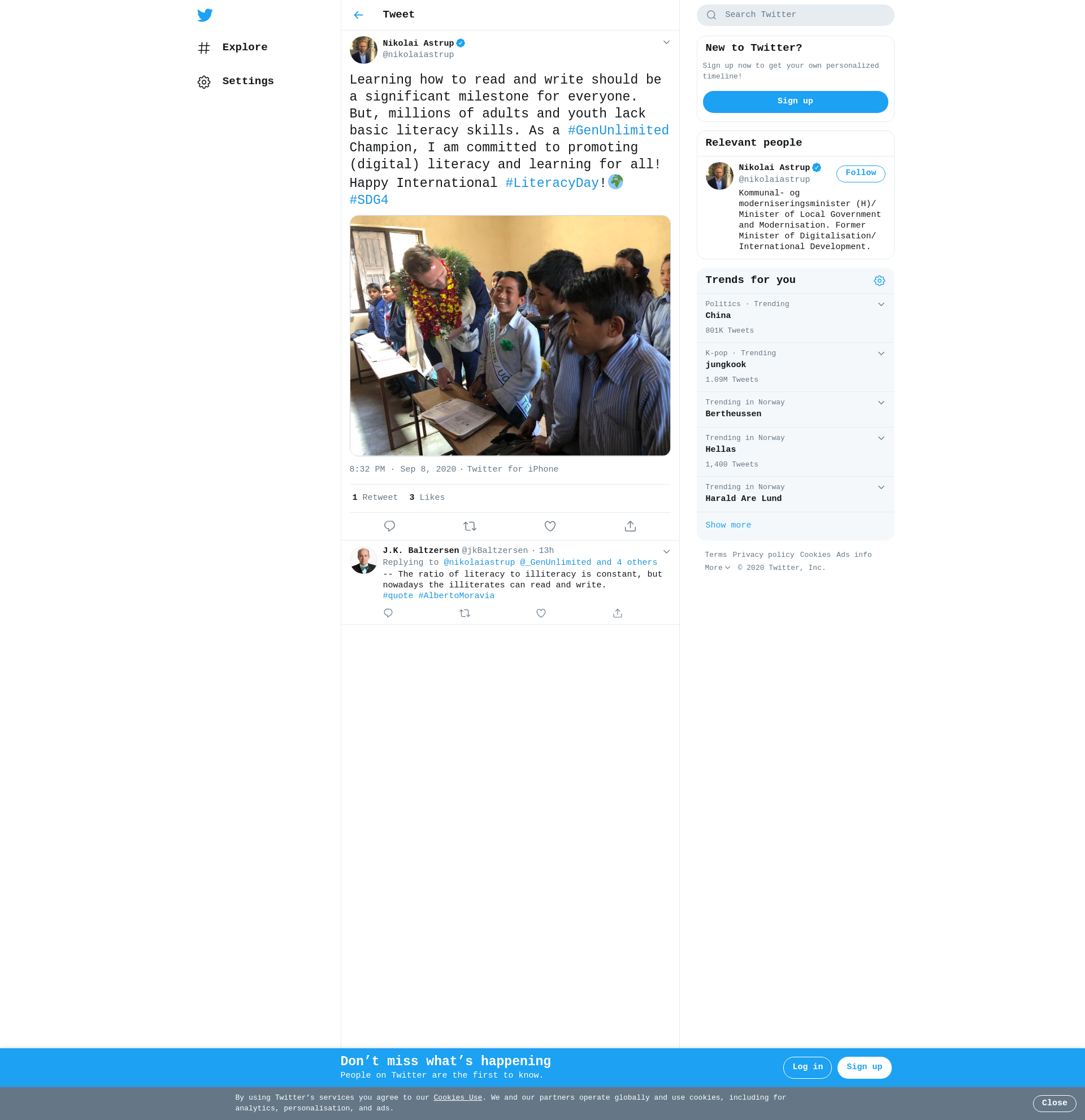 Learning how to read and write should be a significant milestone for everyone. But, millions of adults and youth lack basic literacy skills. As a #GenUnlimited Champion, I am committed to promoting (digital) literacy and learning for all! Happy International #LiteracyDay!🌍 #SDG4 https://t.co/R5l0ibiNxs