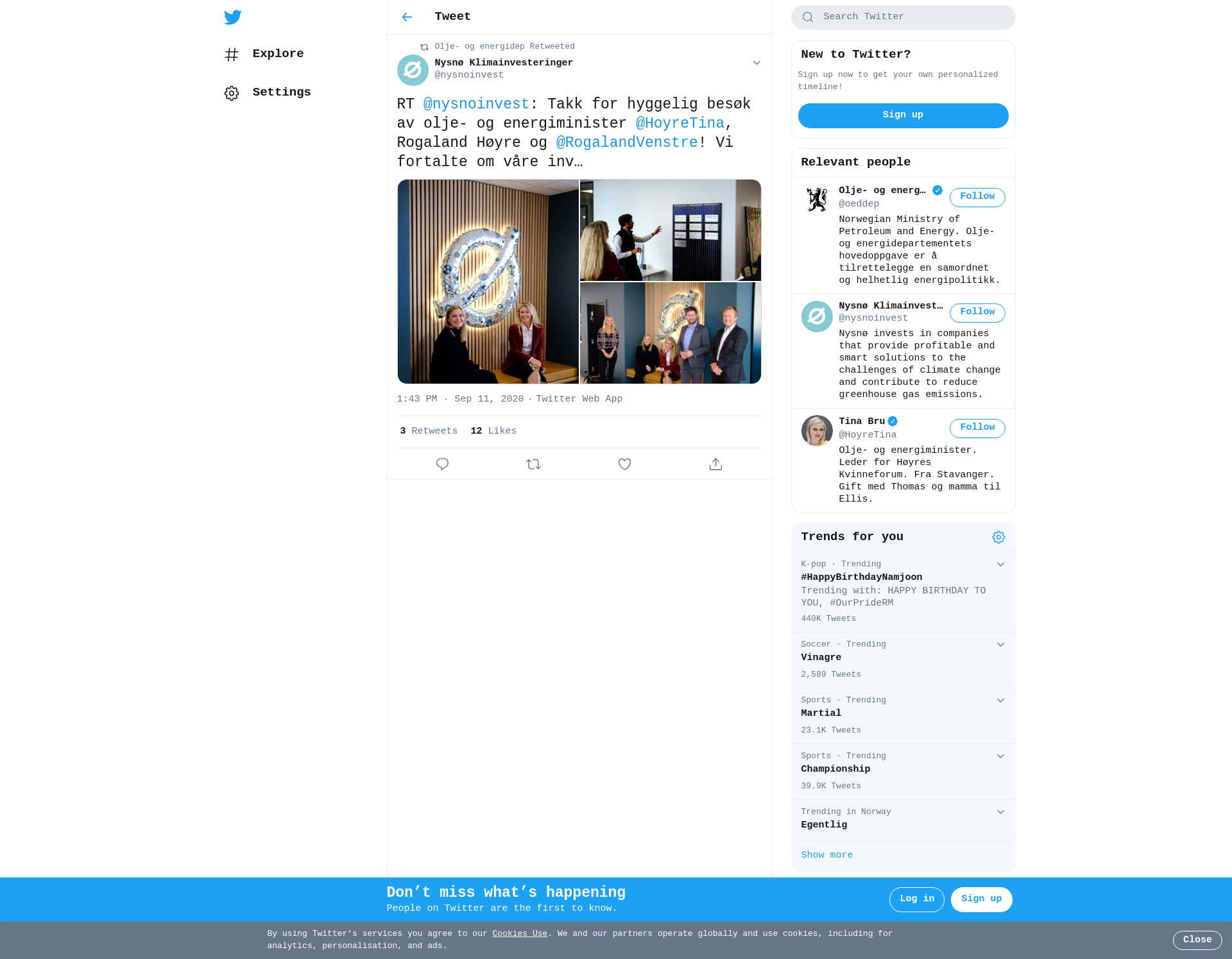 RT @nysnoinvest: Takk for hyggelig besøk av olje- og energiminister @HoyreTina, Rogaland Høyre og @RogalandVenstre! Vi fortalte om våre investeringsstrategier og hvorfor vi har satset på #hydrogen, #landbruk, #energi og #digitalisering! 🌊 @oeddep https://t.co/BMEdXXbW3j