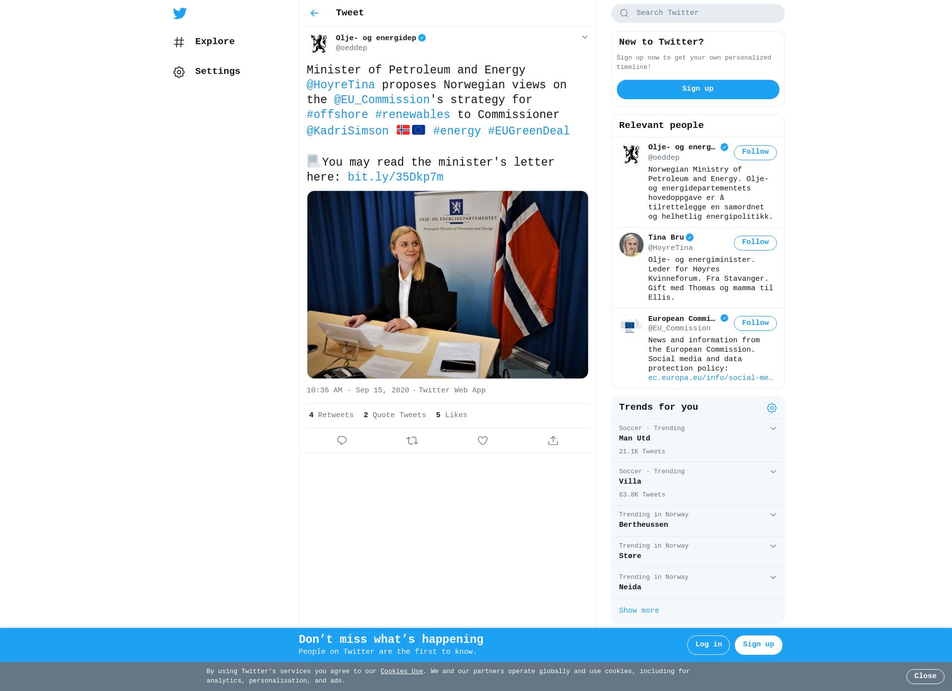 Minister of Petroleum and Energy @HoyreTina proposes Norwegian views on the @EU_Commission's strategy for #offshore #renewables to Commissioner @KadriSimson 🇳🇴🇪🇺 #energy #EUGreenDeal