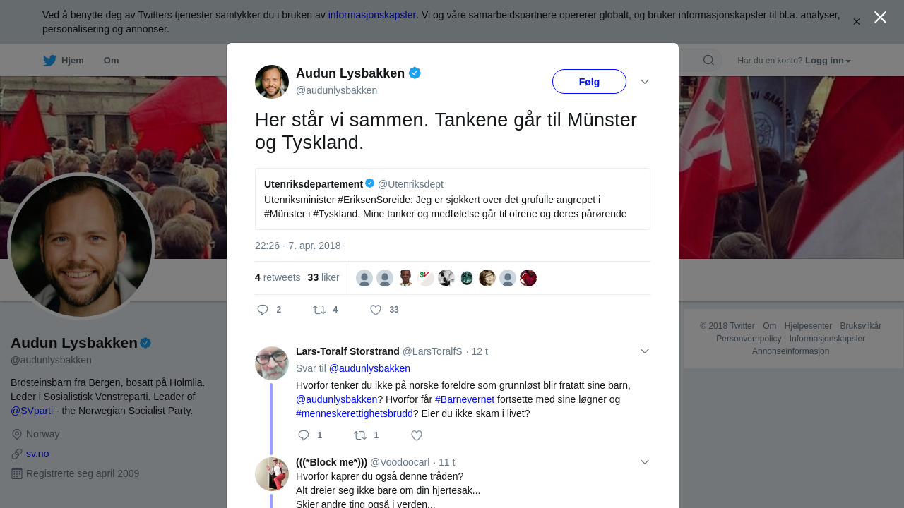 RT @audunlysbakken: Her står vi sammen. Tankene går til Münster og Tyskland. https://t.co/4Zr43ztbQY
