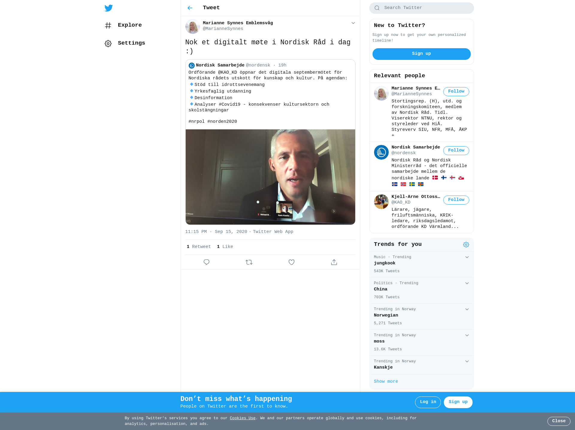 Nok et digitalt møte i Nordisk Råd i dag :)