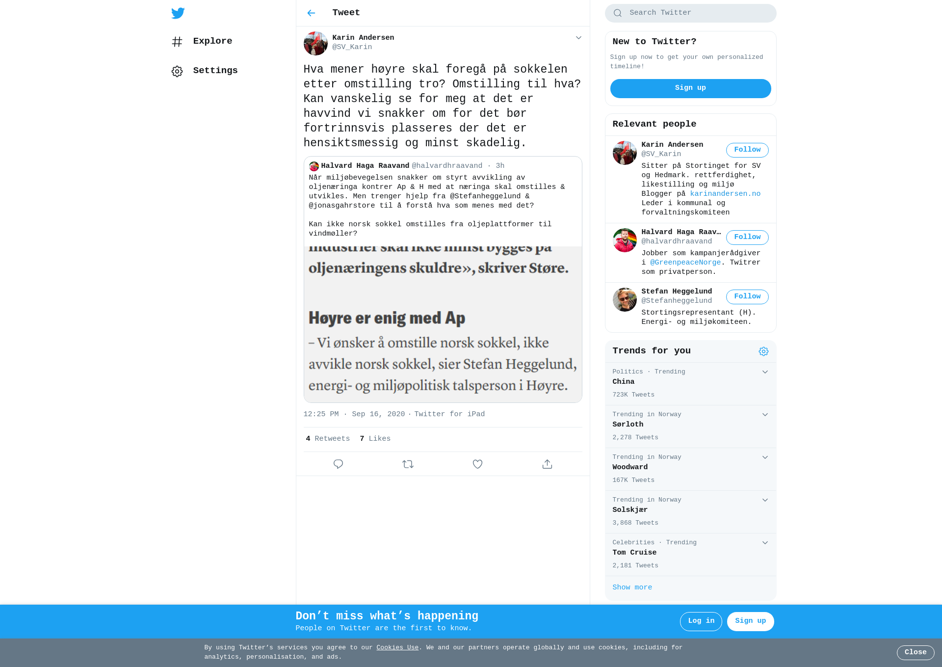 Hva mener høyre skal foregå på sokkelen etter omstilling tro? Omstilling til hva? Kan vanskelig se for meg at det er havvind vi snakker om for det bør fortrinnsvis plasseres der det er hensiktsmessig og minst skadelig.
