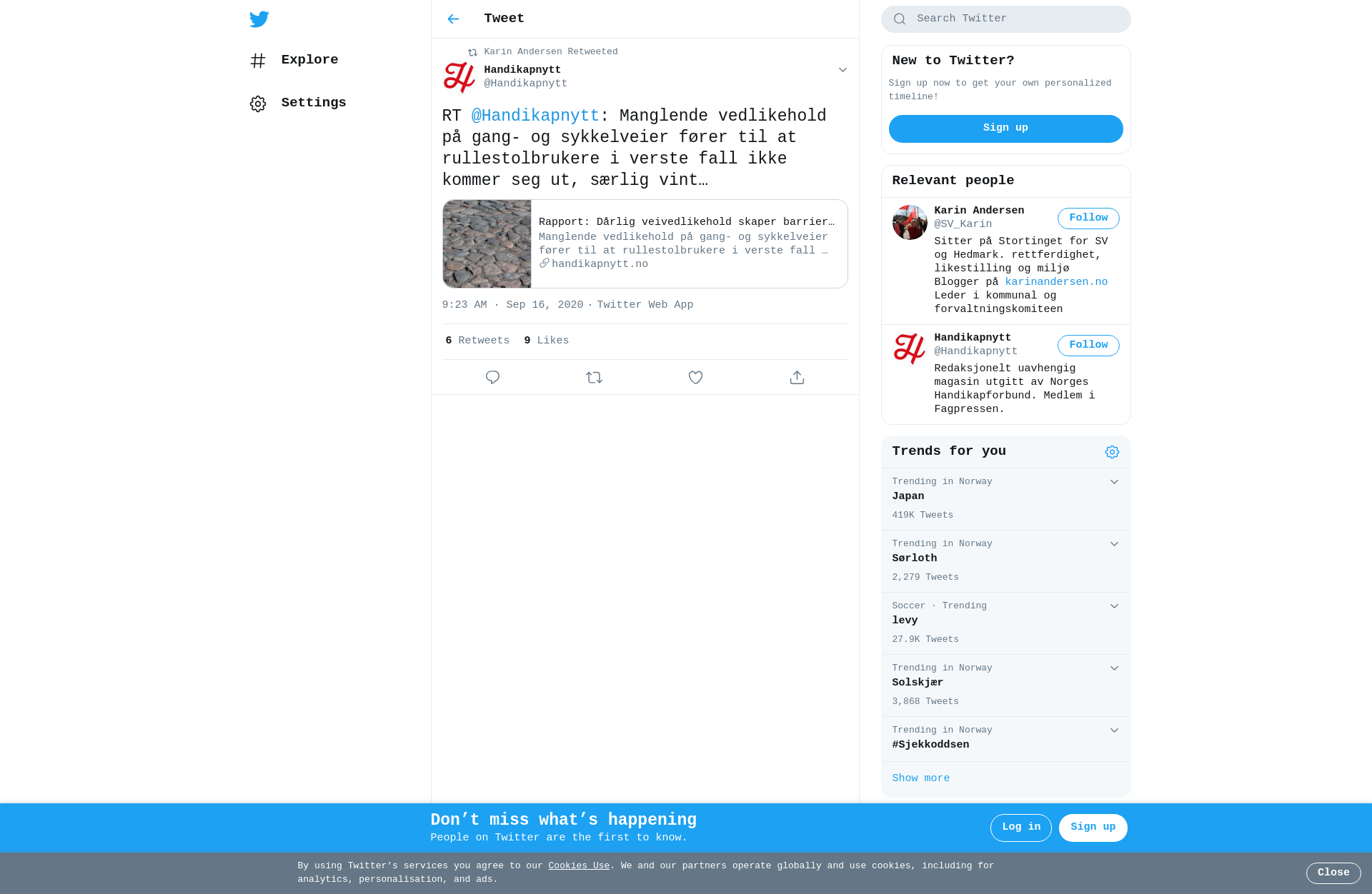 RT @Handikapnytt: Manglende vedlikehold på gang- og sykkelveier fører til at rullestolbrukere i verste fall ikke kommer seg ut, særlig vinterstid. Det kommer fram i en ny studie fra Transportøkonomisk institutt. https://t.co/8Dv8jKzsbE