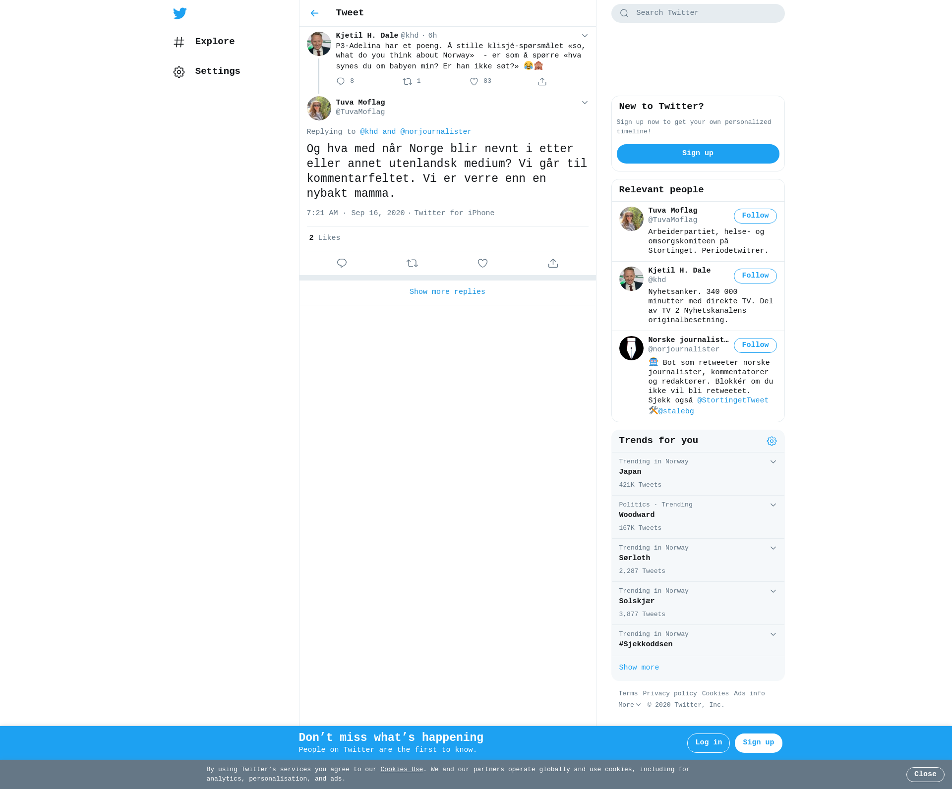 @khd @norjournalister Og hva med når Norge blir nevnt i etter eller annet utenlandsk medium? Vi går til kommentarfeltet. Vi er verre enn en nybakt mamma.