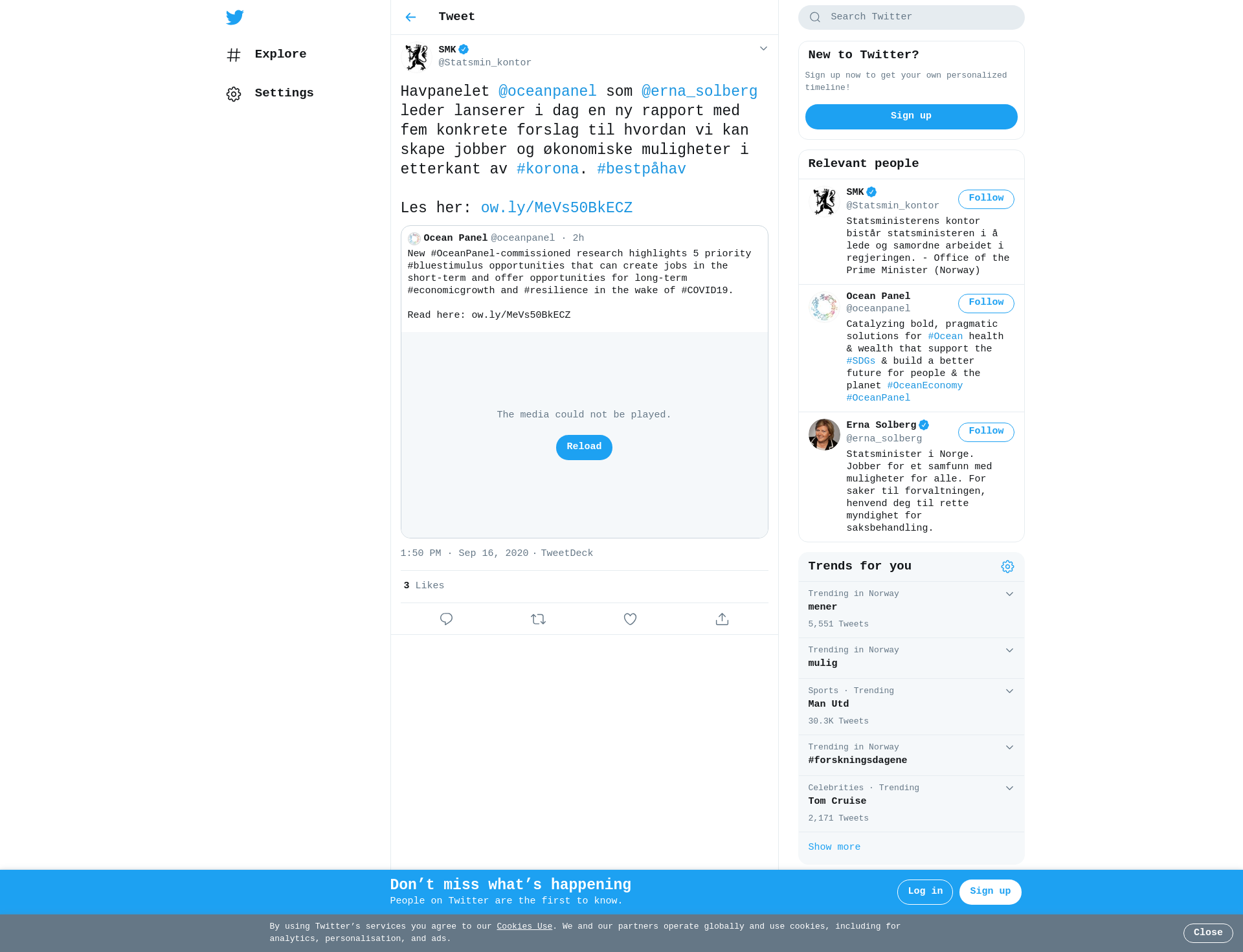 Havpanelet @oceanpanel som @erna_solberg leder lanserer i dag en ny rapport med fem konkrete forslag til hvordan vi kan skape jobber og økonomiske muligheter i etterkant av #korona. #bestpåhav