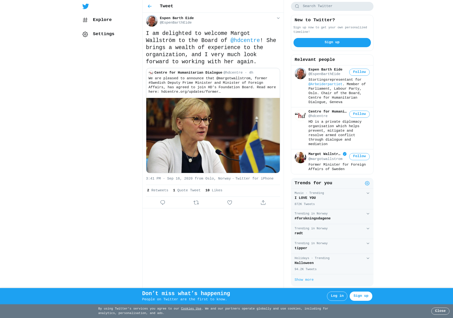 I am delighted to welcome Margot Wallström to the Board of @hdcentre! She brings a wealth of experience to the organization, and I very much look forward to working with her again.