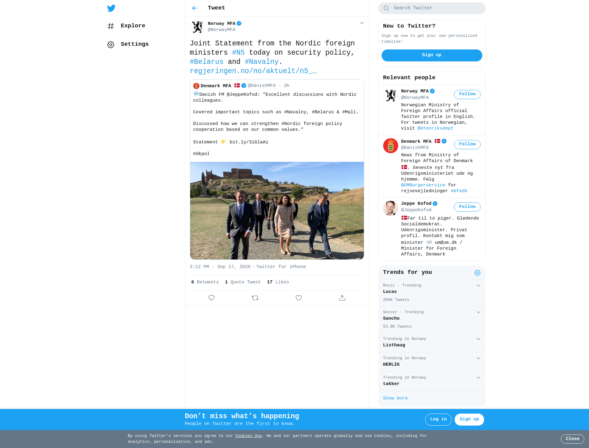 Joint Statement by Nordic Foreign Ministers (N5) from Bornholm