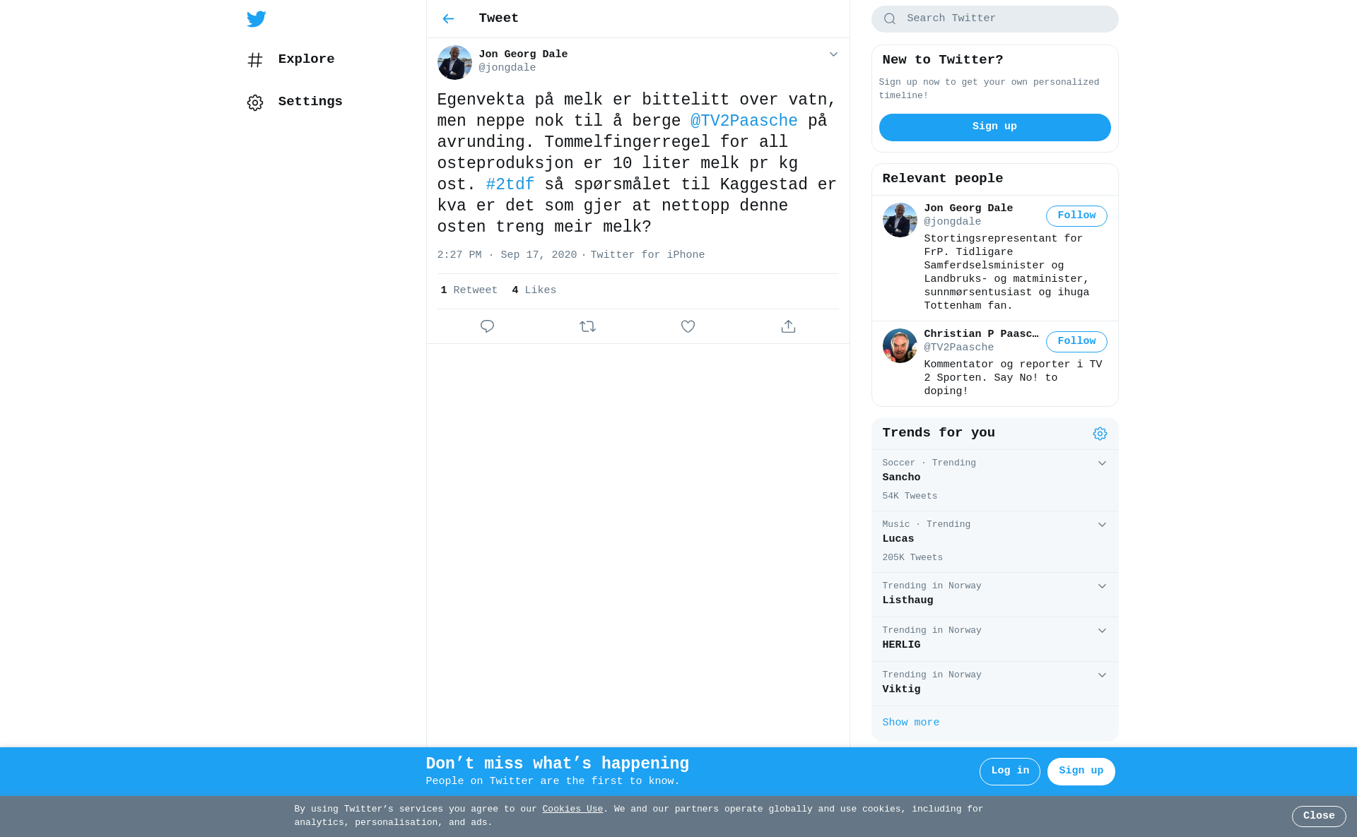 Egenvekta på melk er bittelitt over vatn, men neppe nok til å berge @TV2Paasche på avrunding. Tommelfingerregel for all osteproduksjon er 10 liter melk pr kg ost. #2tdf så spørsmålet til Kaggestad er kva er det som gjer at nettopp denne osten treng meir melk?
