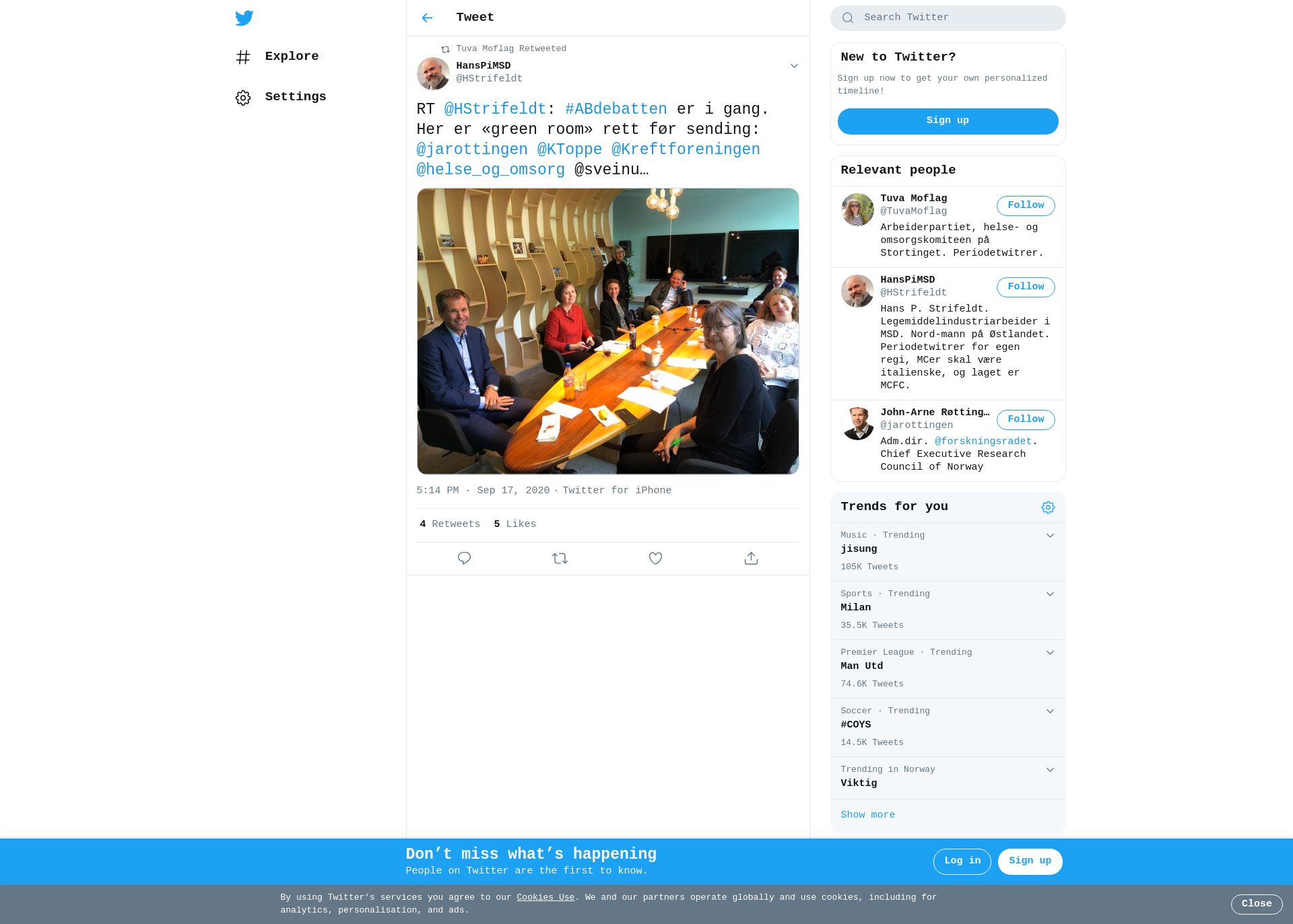 RT @HStrifeldt: #ABdebatten er i gang. Her er «green room» rett før sending: @jarottingen @KToppe @Kreftforeningen @helse_og_omsorg @sveinungen @legemiddelind @TuvaMoflag @anspurk @NickWilki https://t.co/DtKEpKk3DR