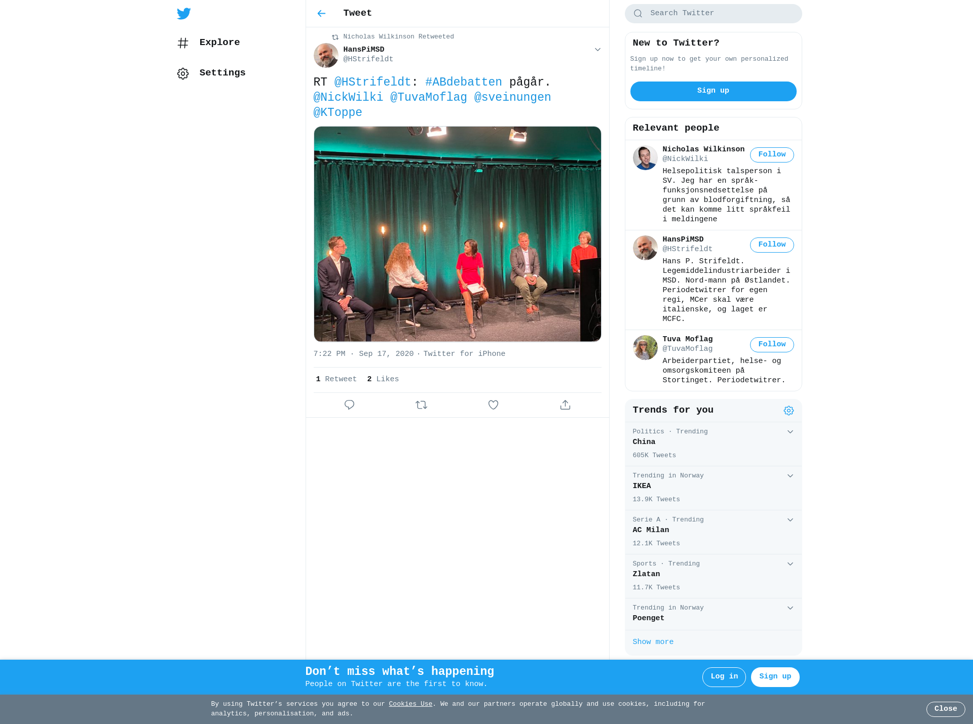 RT @HStrifeldt: #ABdebatten pågår. @NickWilki @TuvaMoflag @sveinungen @KToppe https://t.co/TWcpkuTlLe