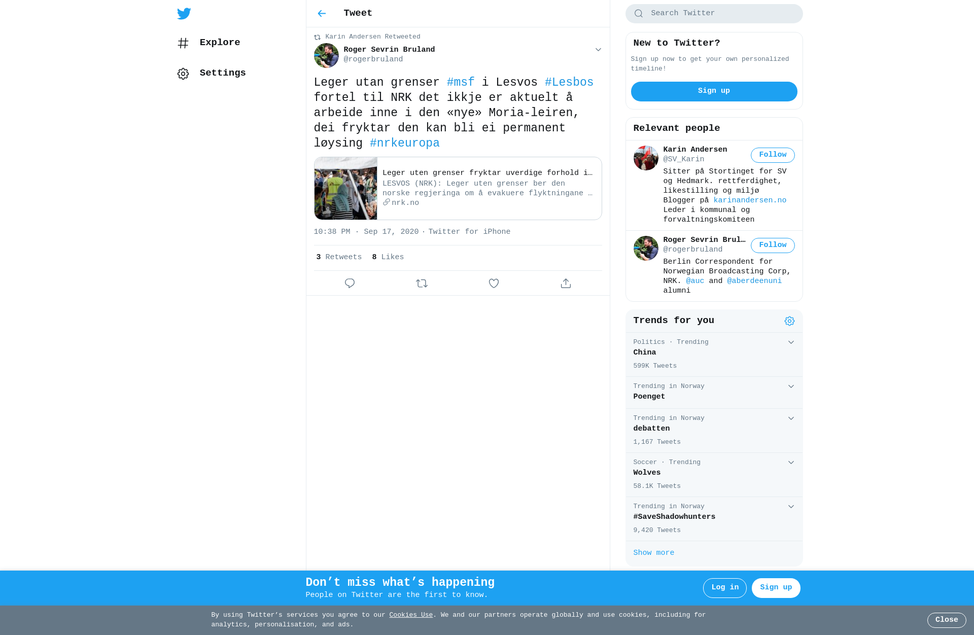 RT @rogerbruland: Leger utan grenser #msf i Lesvos #Lesbos fortel til NRK det ikkje er aktuelt å arbeide inne i den «nye» Moria-leiren, dei fryktar den kan bli ei permanent løysing #nrkeuropa https://t.co/5p1UMUSVdj