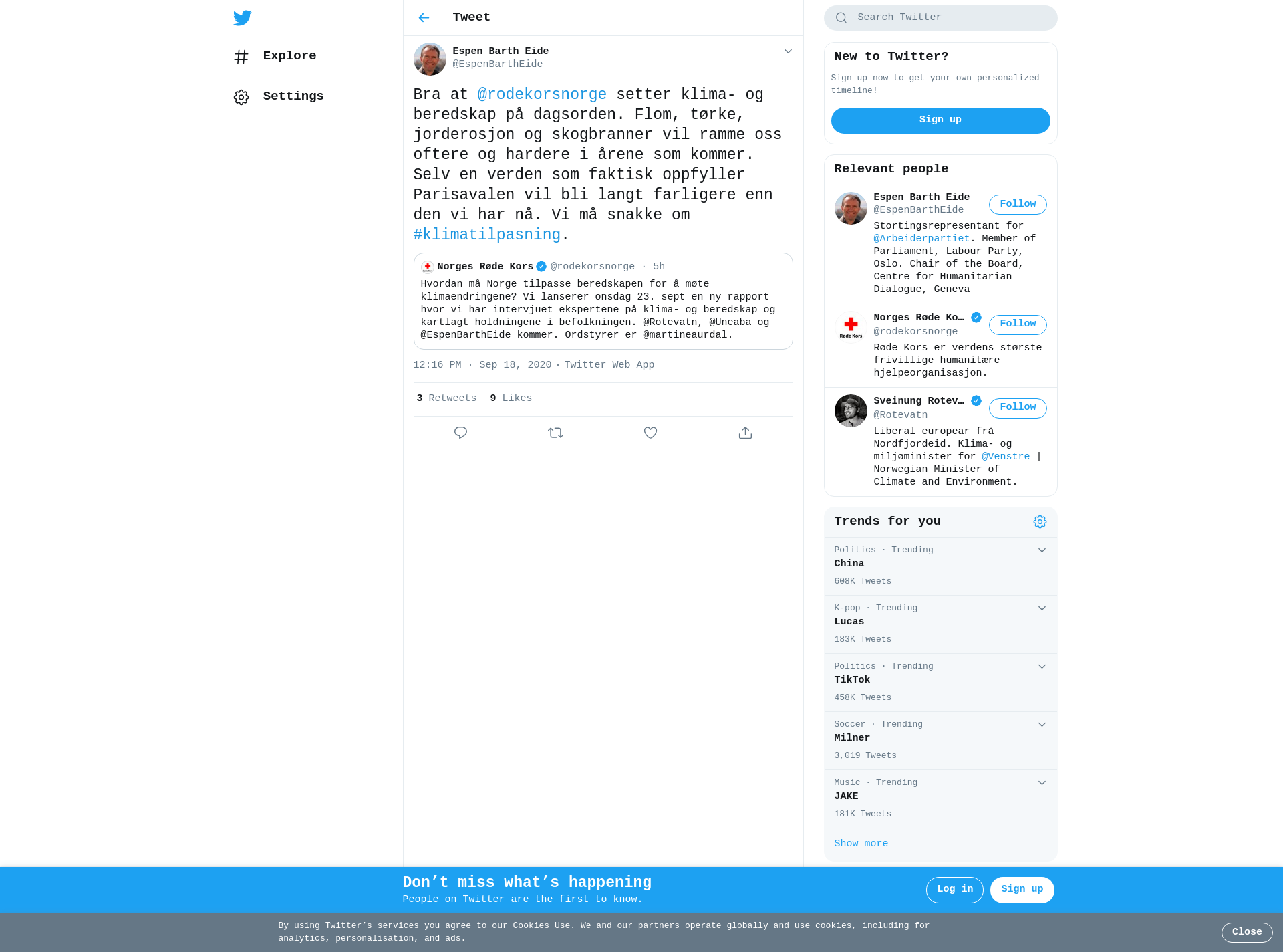 Bra at @rodekorsnorge setter klima- og beredskap på dagsorden. Flom, tørke, jorderosjon og skogbranner vil ramme oss oftere og hardere i årene som kommer. Selv en verden som faktisk oppfyller Parisavalen vil bli langt farligere enn den vi har nå. Vi må snakke om #klimatilpasning.