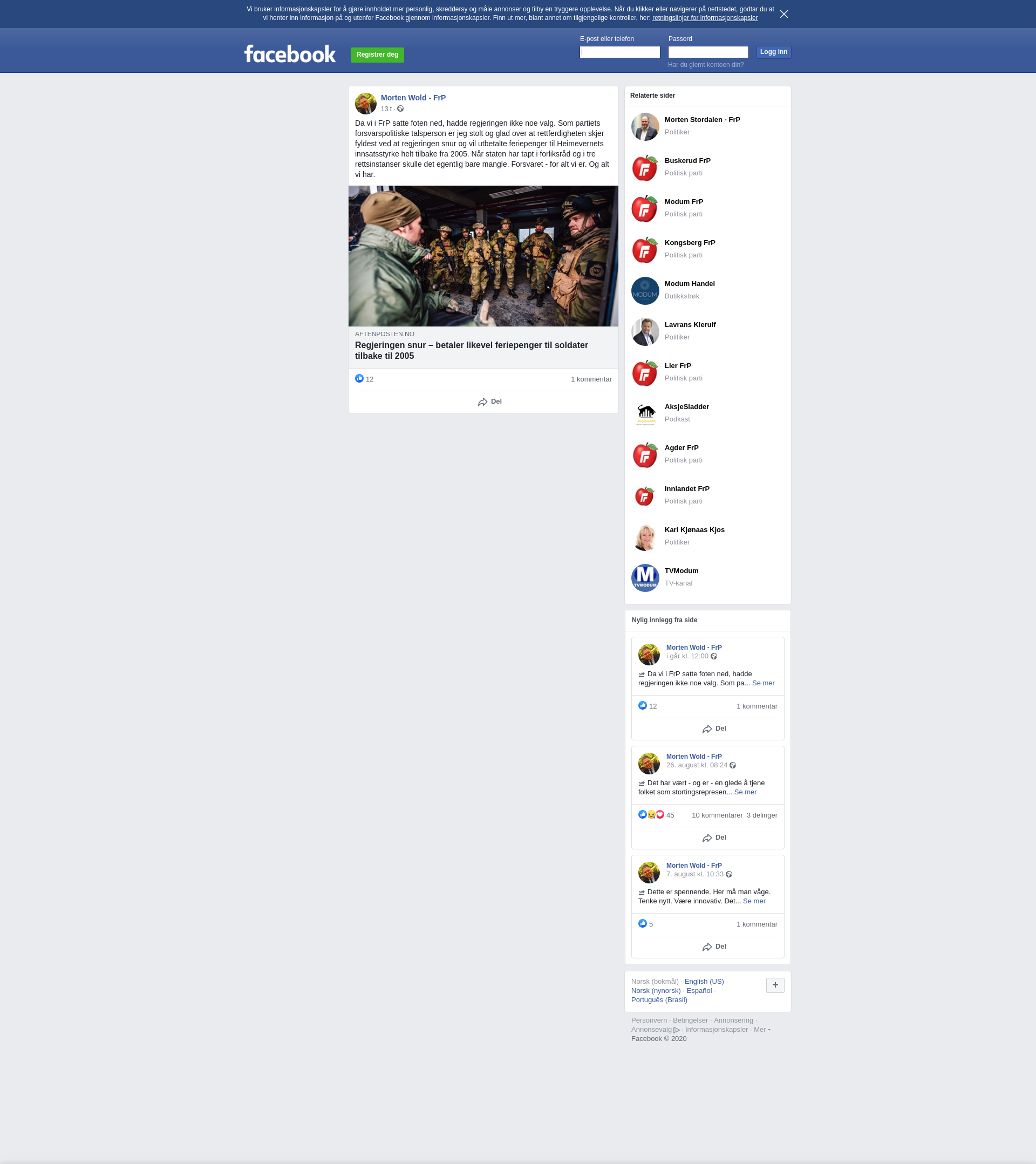 Da vi i FrP satte foten ned, hadde regjeringen ikke noe valg. Som partiets forsvarspolitiske talsperson er jeg stolt og glad over at rettferdigheten skjer fyldest ved at regjeringen snur og vil utbetalte feriepenger til Heimevernets innsatsstyrke helt tilbake fra 2005. Når staten har tapt i forliksråd og i tre rettsinstanser skulle det egentlig bare mangle. Forsvaret - for alt vi er. Og alt vi har.