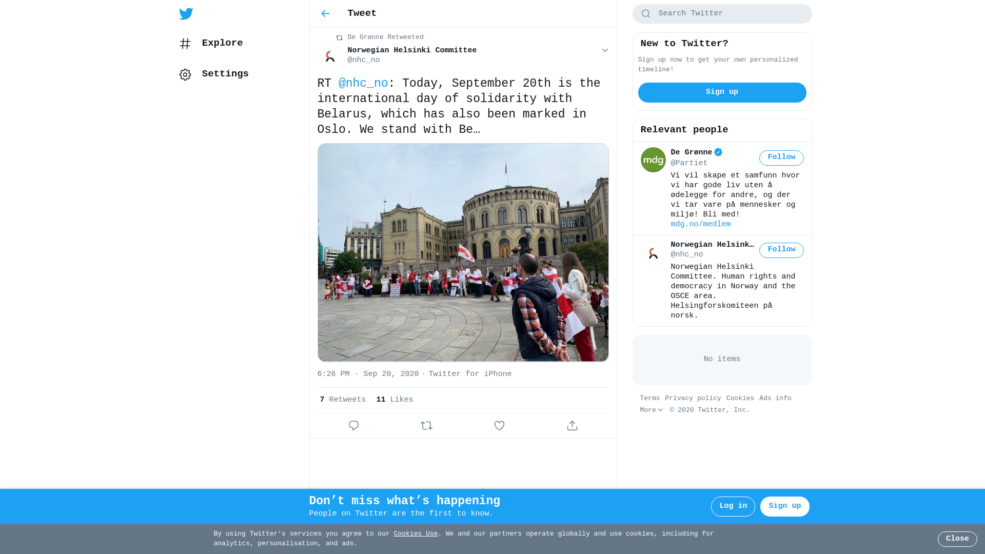 RT @nhc_no: Today, September 20th is the international day of solidarity with Belarus, which has also been marked in Oslo. We stand with Belarus, and participated at the demonstration in front of the Norwegian parliament! 🤍❤️🤍