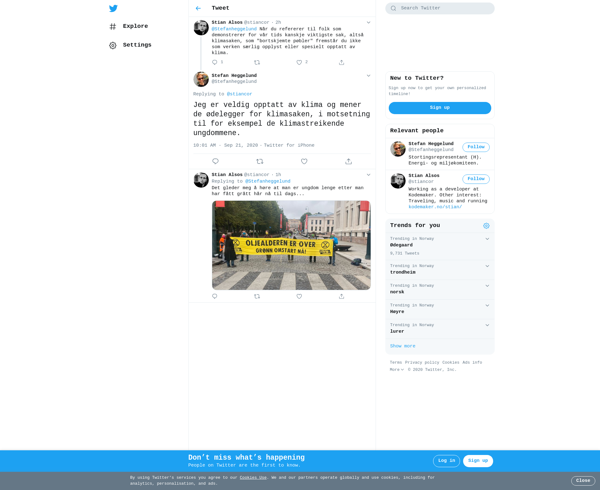 @stiancor Jeg er veldig opptatt av klima og mener de ødelegger for klimasaken, i motsetning til for eksempel de klimastreikende ungdommene.