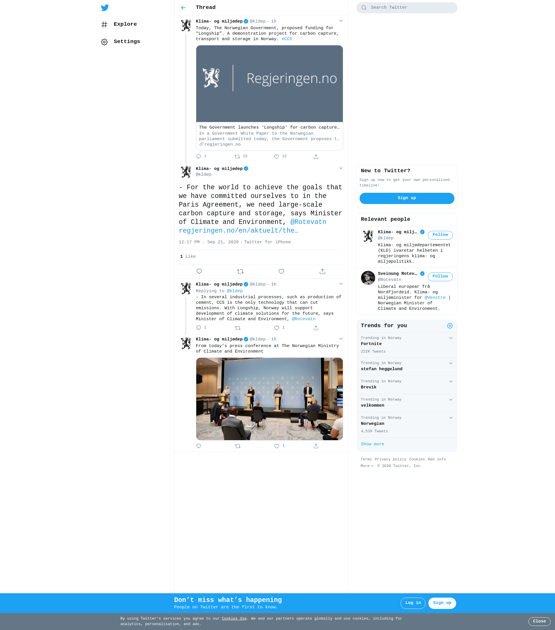 - For the world to achieve the goals that we have committed ourselves to in the Paris Agreement, we need large-scale carbon capture and storage, says Minister of Climate and Environment, @Rotevatn
