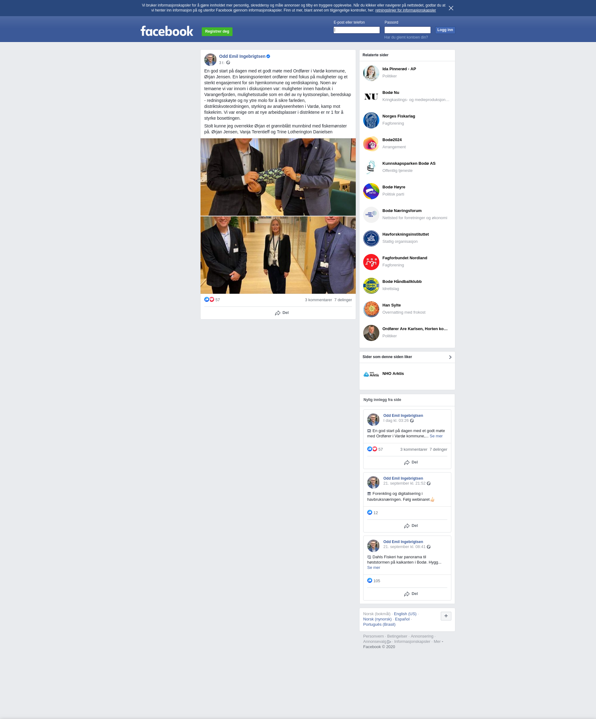 En god start på dagen med et godt møte med Ordfører i Vardø kommune, Ørjan Jensen. En løsningsorientert ordfører med fokus på muligheter og et sterkt engasjement for sin hjemkommune og verdiskapning. Noen av temaene vi var innom i diskusjonen var: muligheter innen havbruk i Varangerfjorden, mulighetsstudie som en del av ny kystsoneplan, beredskap - redningsskøyte og ny ytre molo for å sikre farleden, distriktskvoteordningen, styrking av analyseenheten i Vardø, kamp mot fiskekrim. Vi var enige om at nye arbeidsplasser i distriktene er nr 1 for å styrke bosettingen.