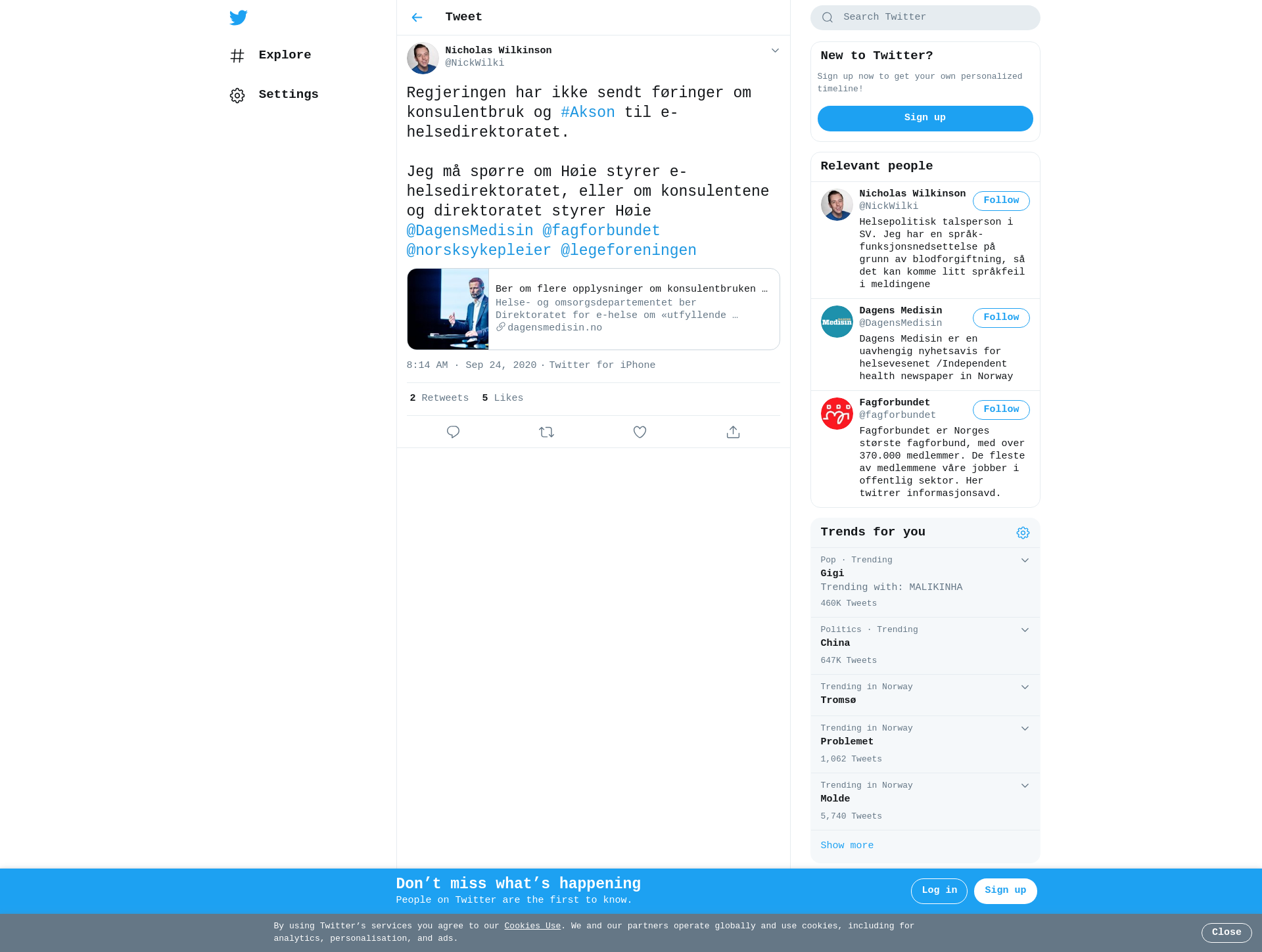 Regjeringen har ikke sendt føringer om konsulentbruk og #Akson til e-helsedirektoratet.