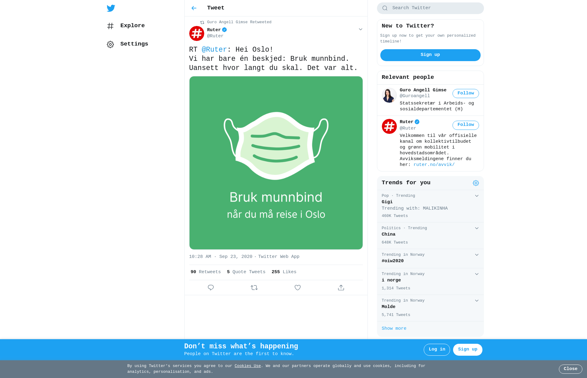 RT @Ruter: Hei Oslo! Vi har bare én beskjed: Bruk munnbind. Uansett hvor langt du skal. Det var alt. https://t.co/zVU2d34qxt