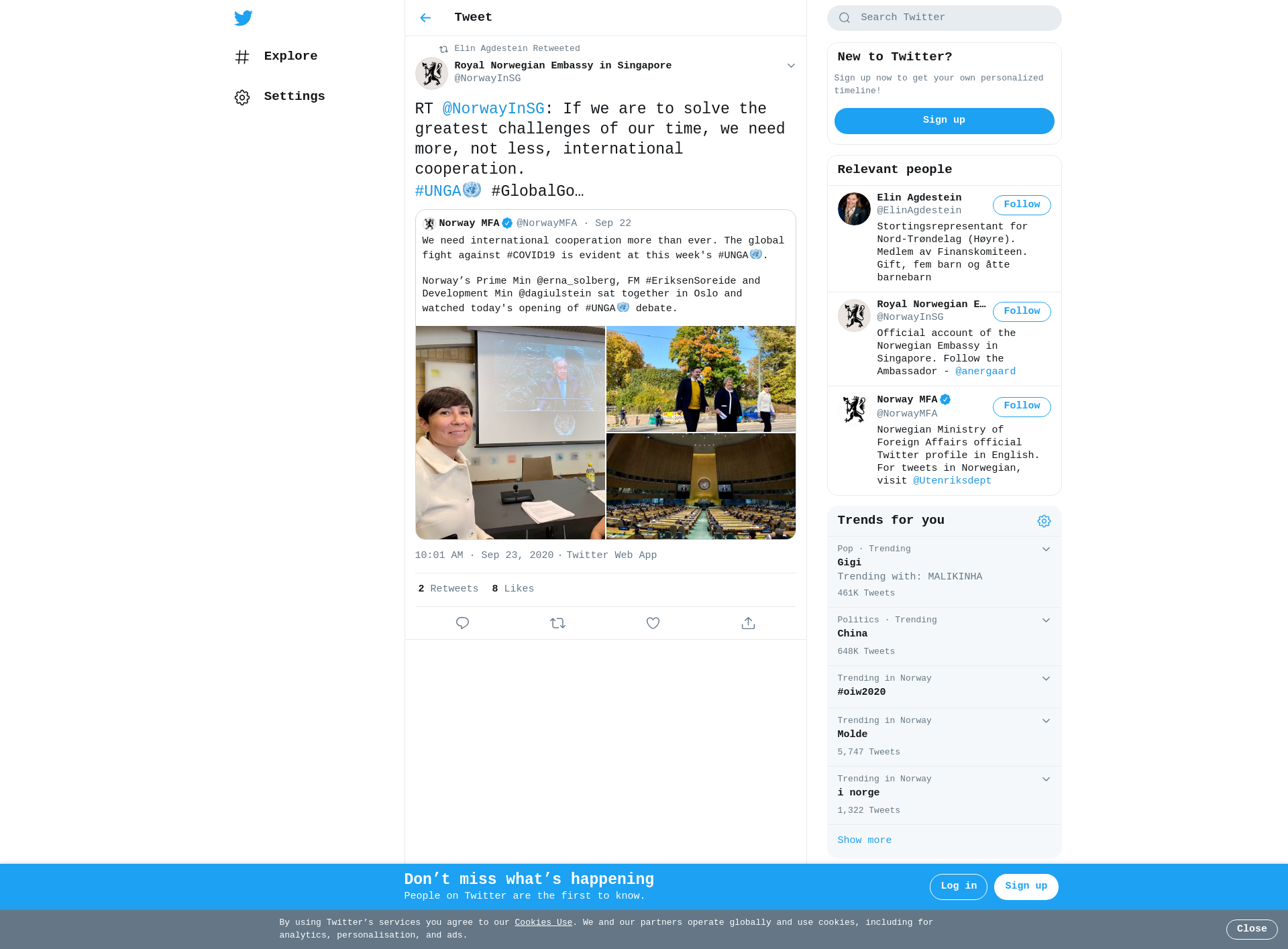 RT @NorwayInSG: If we are to solve the greatest challenges of our time, we need more, not less, international cooperation. #UNGA #GlobalGo…