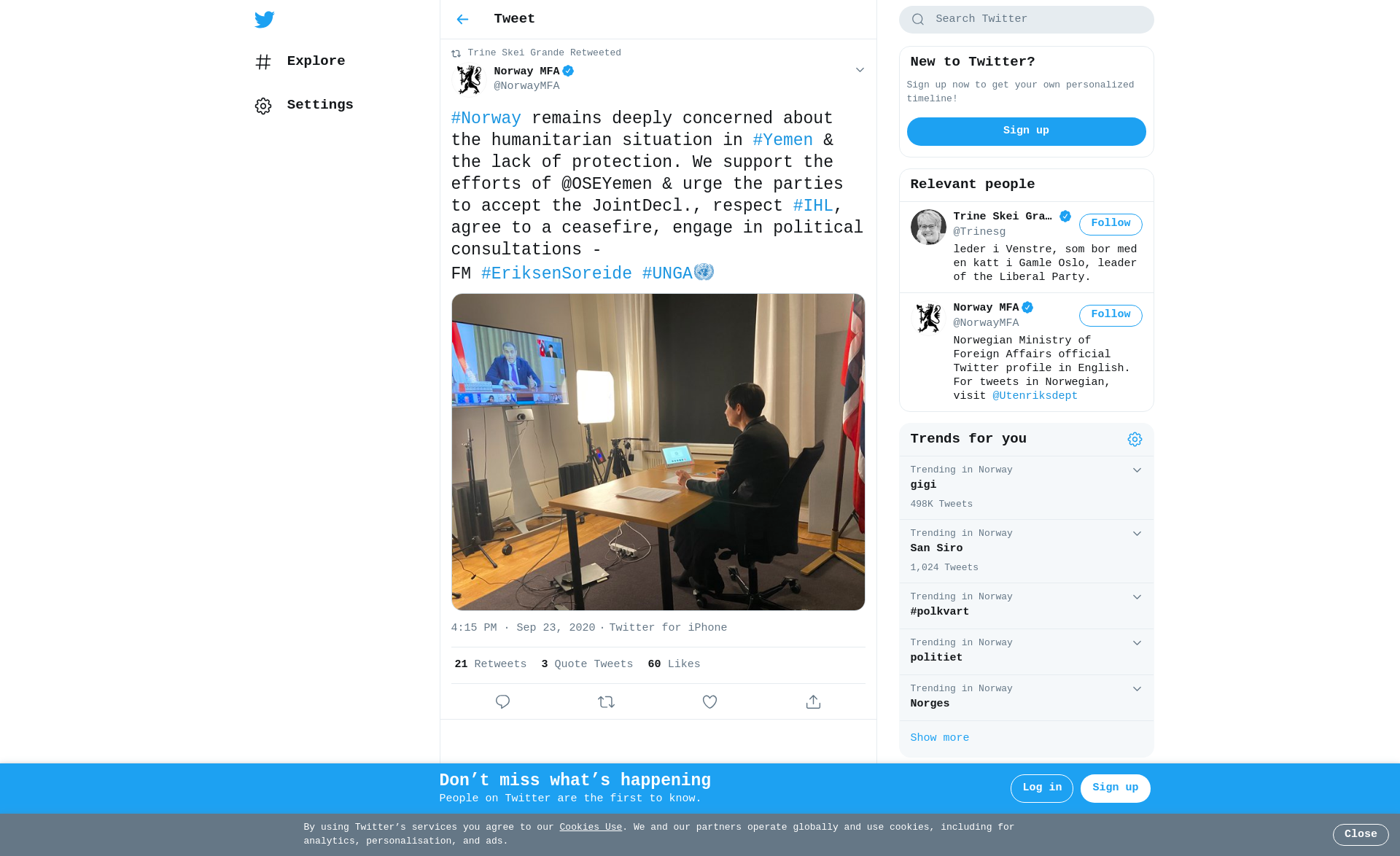 RT @NorwayMFA: #Norway remains deeply concerned about the humanitarian situation in #Yemen & the lack of protection. We support the efforts of @OSEYemen & urge the parties to accept the JointDecl., respect #IHL, agree to a ceasefire, engage in political consultations -