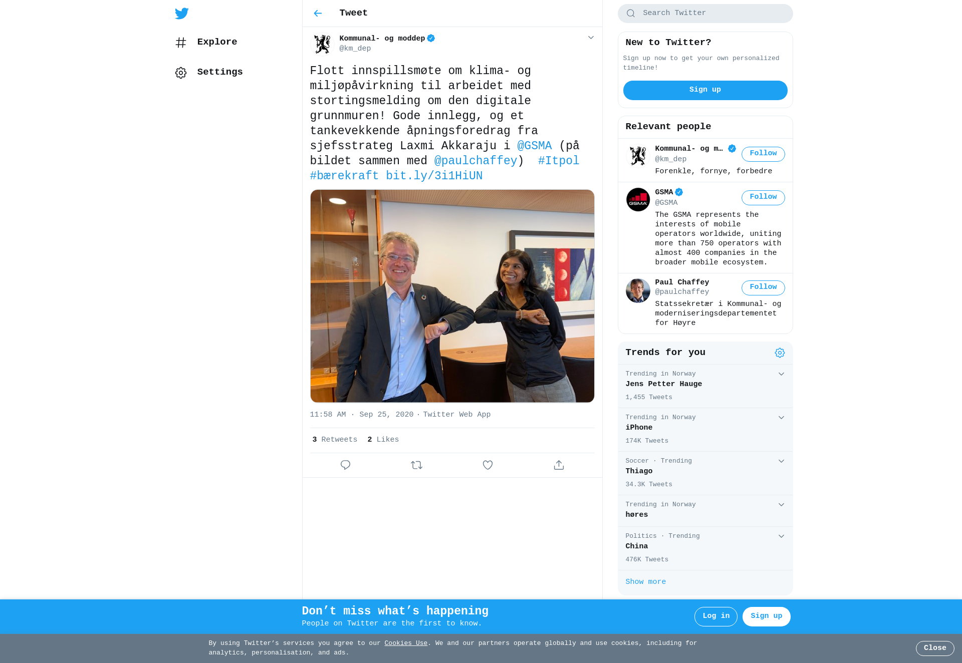 Regjeringens politikk og ambisjoner for sektoren for elektronisk kommunikasjon fremgår av Nasjonal plan for elektronisk kommunikasjon som ble presentert i Digital agenda for Norge (Meld. St. 27 (2015-2016)). Ny stortingsmelding om elektronisk kommunika...