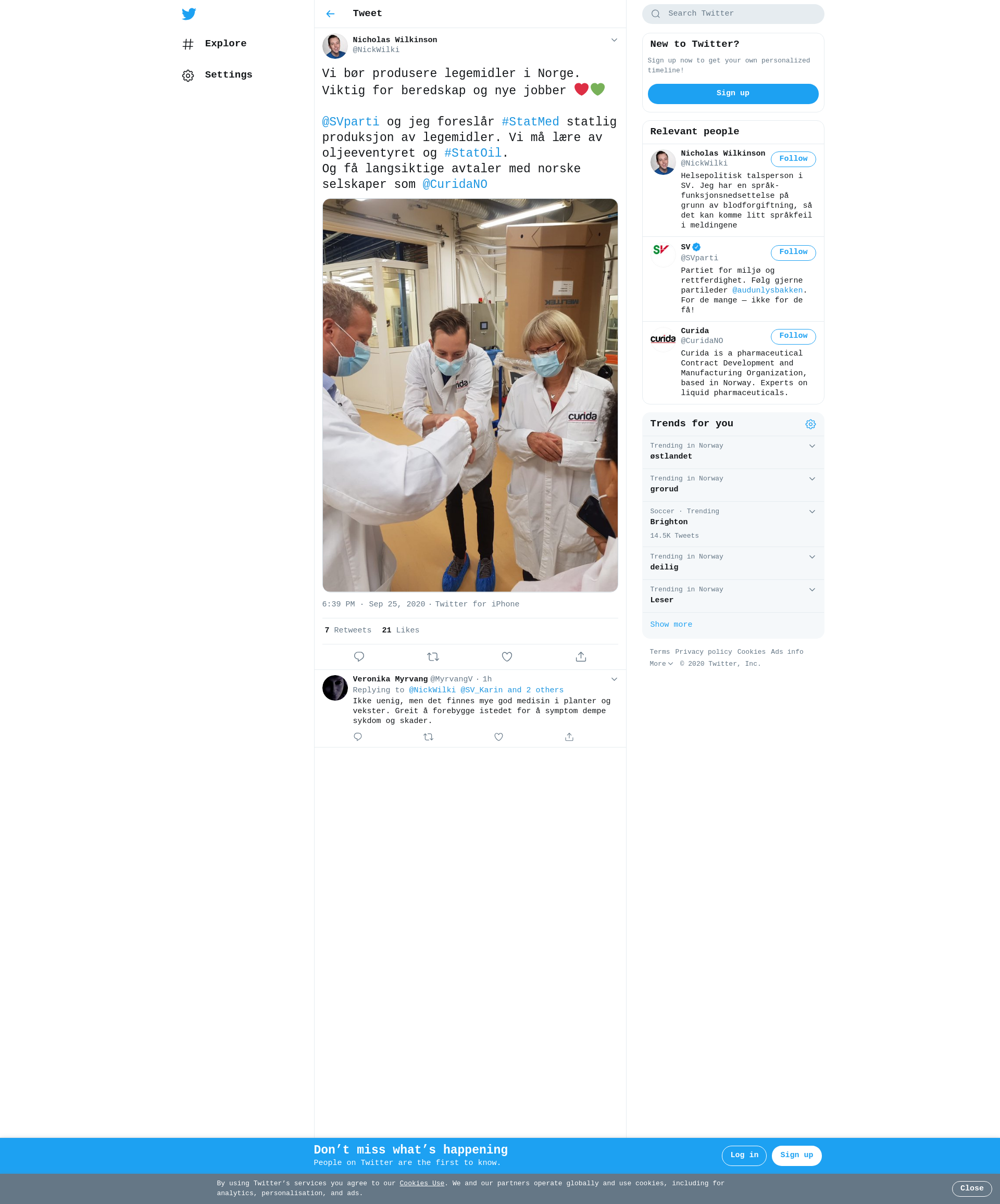 @SVparti og jeg foreslår #StatMed statlig produksjon av legemidler. Vi må lære av oljeeventyret og #StatOil.