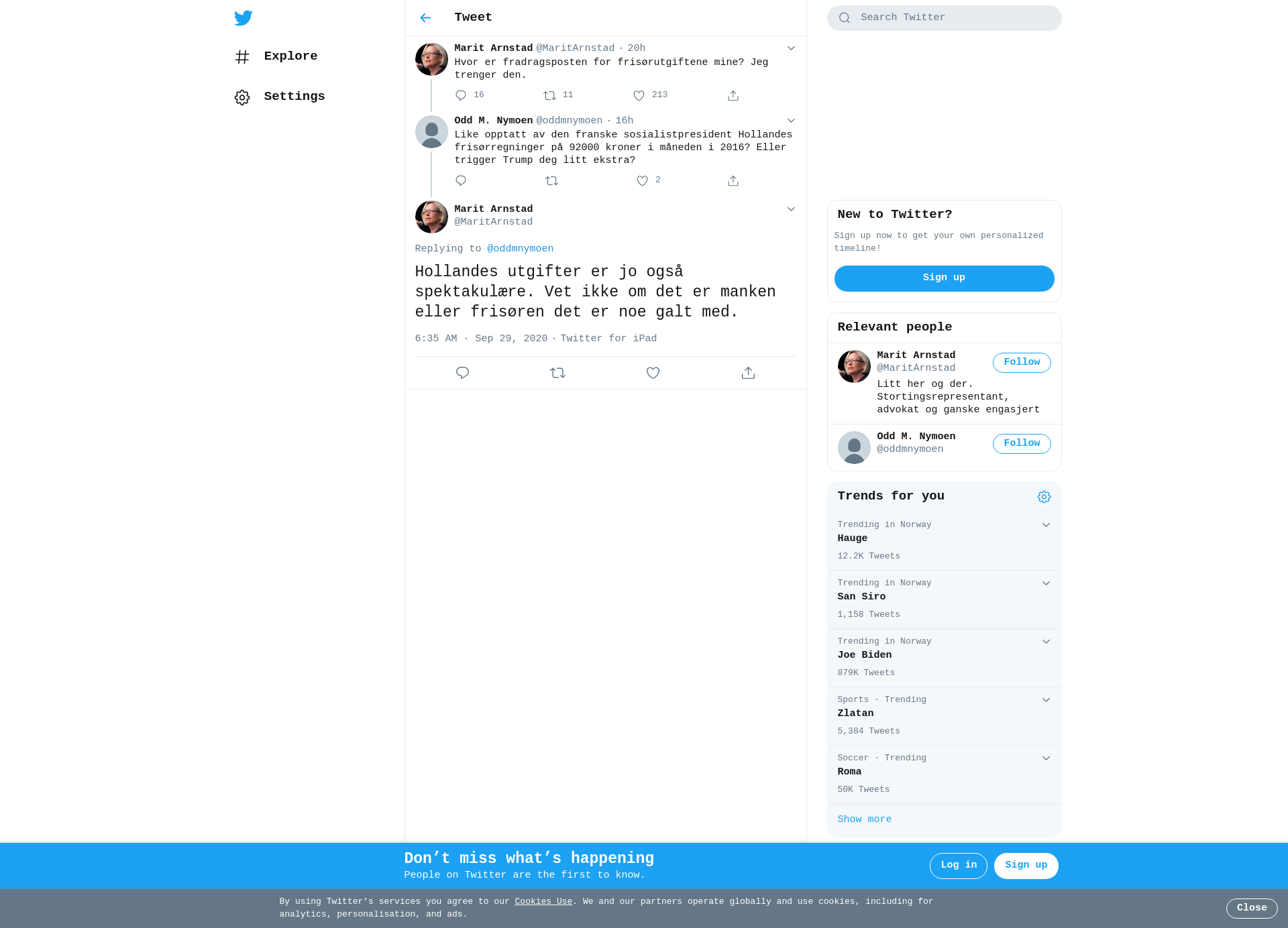 @oddmnymoen Hollandes utgifter er jo også spektakulære. Vet ikke om det er manken eller frisøren det er noe galt med.