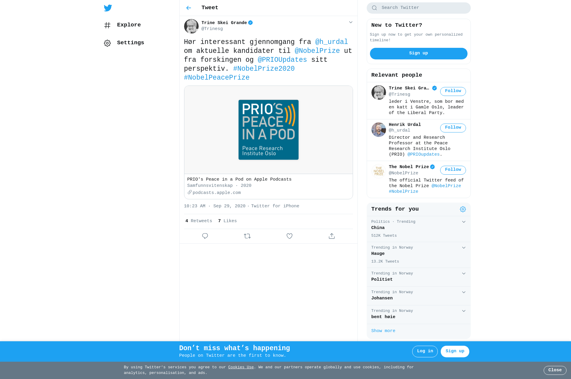 Hør interessant gjennomgang fra @h_urdal om aktuelle kandidater til @NobelPrize ut fra forskingen og @PRIOUpdates sitt perspektiv. #NobelPrize2020 #NobelPeacePrize https://t.co/hYEnp8DhOe