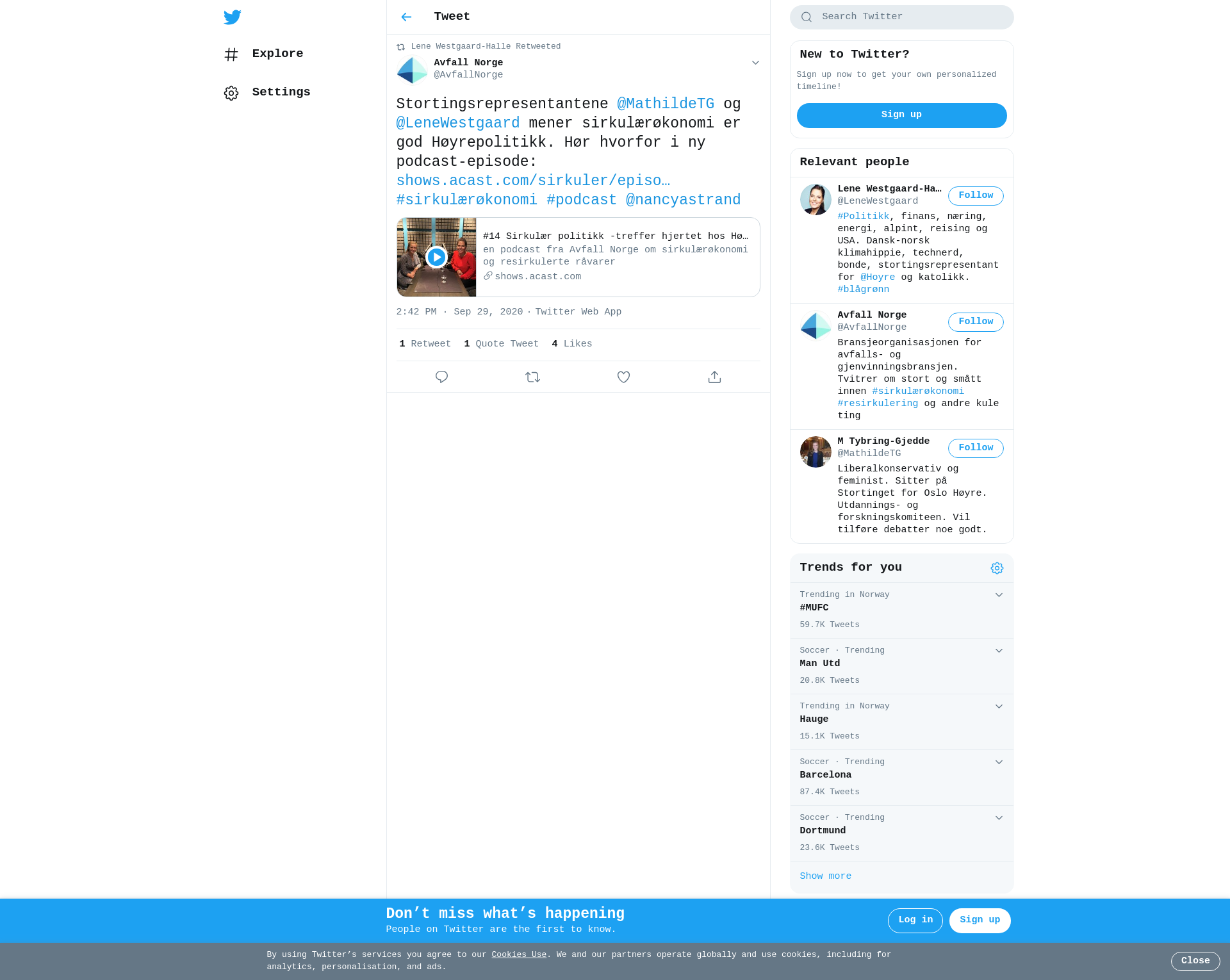 RT @AvfallNorge: Stortingsrepresentantene @MathildeTG og @LeneWestgaard mener sirkulærøkonomi er god Høyrepolitikk. Hør hvorfor i ny podcast-episode: https://t.co/AaVeqDWTw9 #sirkulærøkonomi #podcast @nancyastrand