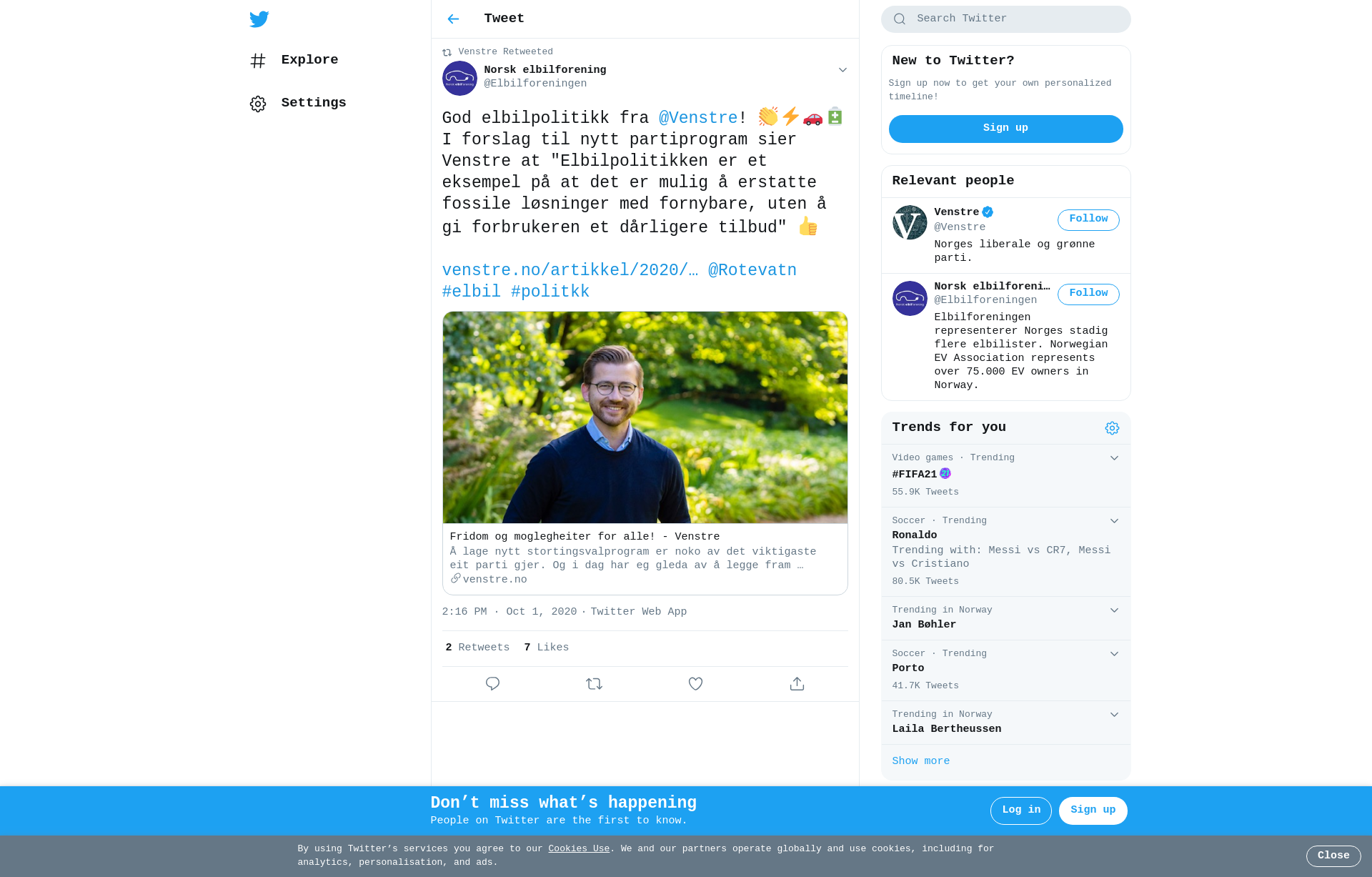 RT @Elbilforeningen: God elbilpolitikk fra @Venstre! 👏⚡️🚗🔋I forslag til nytt partiprogram sier Venstre at "Elbilpolitikken er et eksempel på at det er mulig å erstatte fossile løsninger med fornybare, uten å gi forbrukeren et dårligere tilbud" 👍