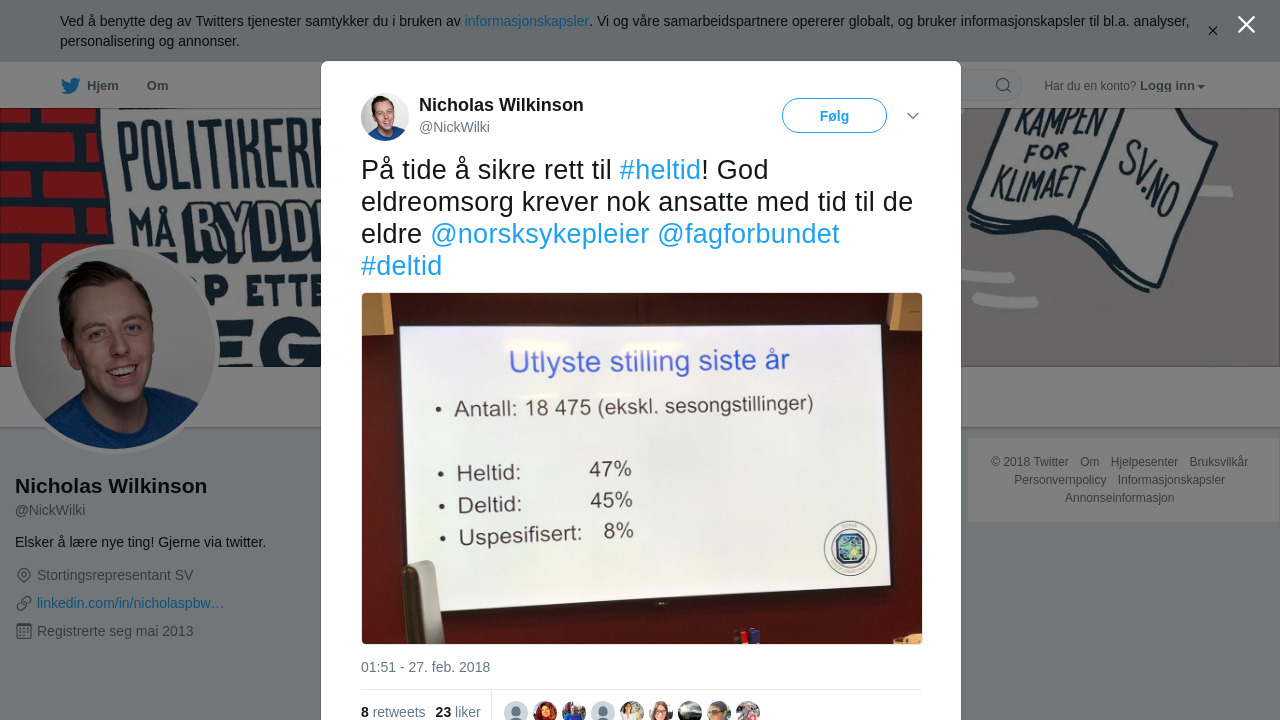 RT @NickWilki: På tide å sikre rett til #heltid! God eldreomsorg krever nok ansatte med tid til de eldre @norsksykepleier… https://t.co/YxqWi63lvm