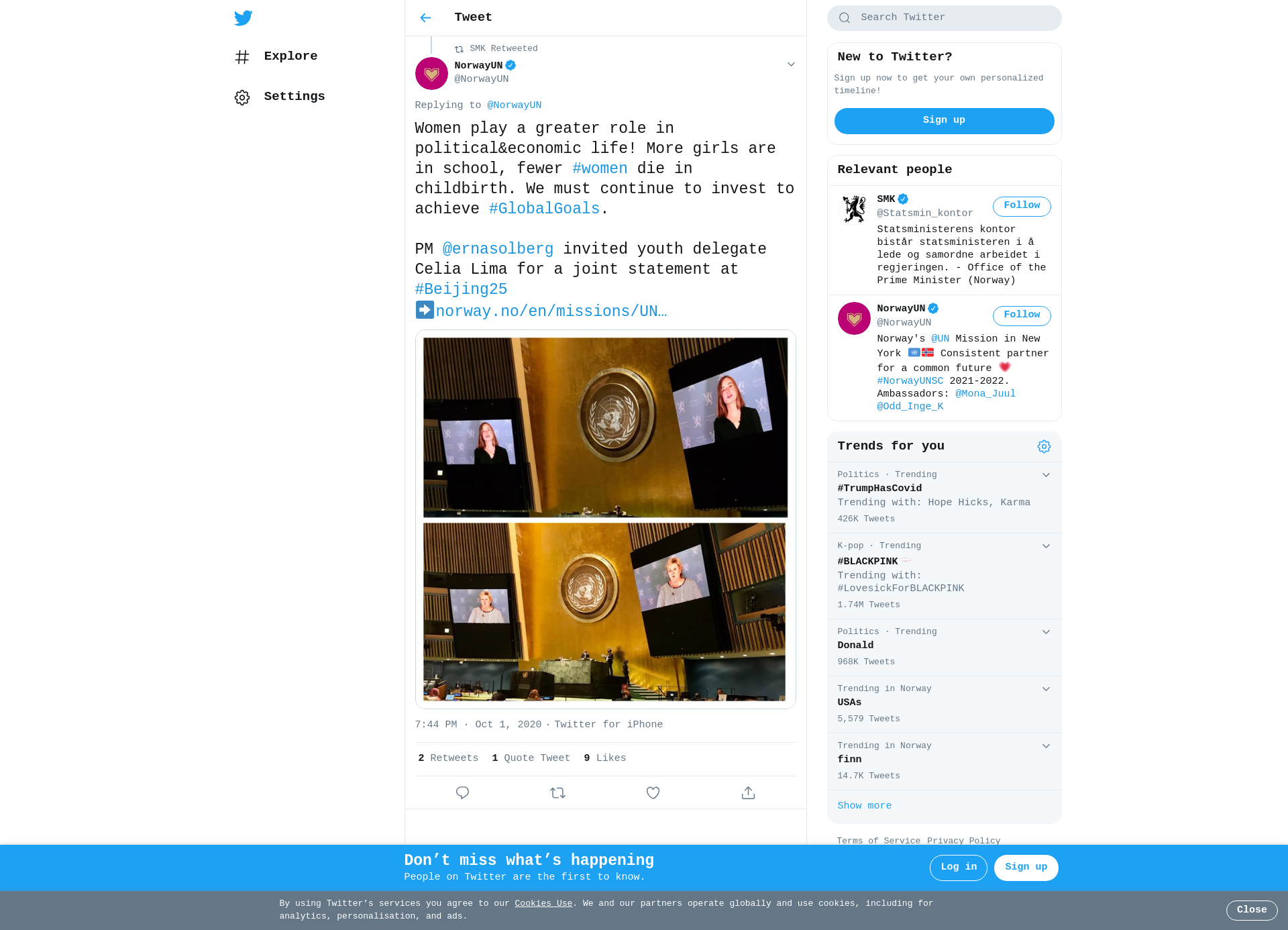 PM @ernasolberg invited youth delegate Celia Lima for a joint statement at #Beijing25