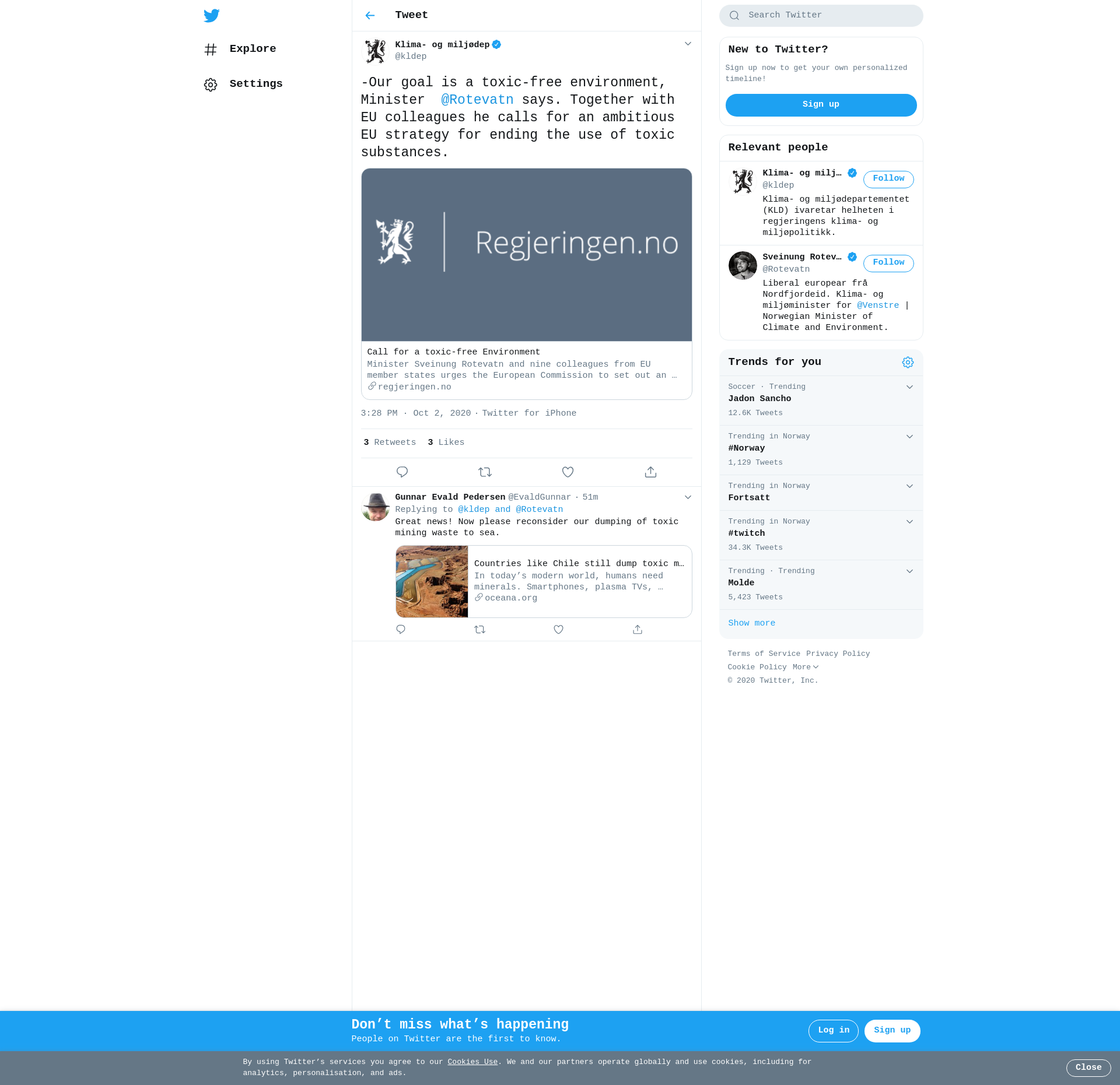 Minister Sveinung Rotevatn and nine colleagues from EU member states urges the European Commission to set out an ambitious strategy for phasing out hazardous substances from products. The ultimate goal is a toxic-free environment.