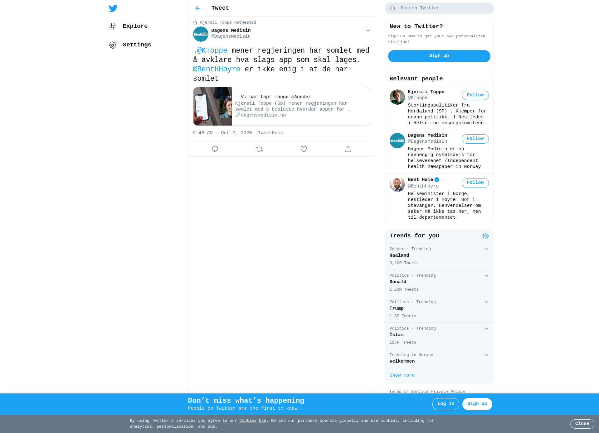 RT @DagensMedisin: .@KToppe mener regjeringen har somlet med å avklare hva slags app som skal lages. @BentHHoyre er ikke enig i at de har somlet https://t.co/LFrnIubGAQ