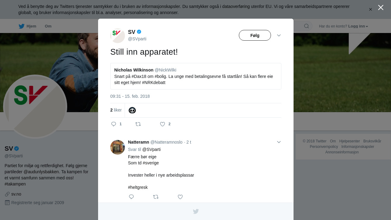 “Snart på #Dax18 om #bolig. La unge med betalingsevne få startlån! Så kan flere eie sitt eget hjem! #NRKdebatt”