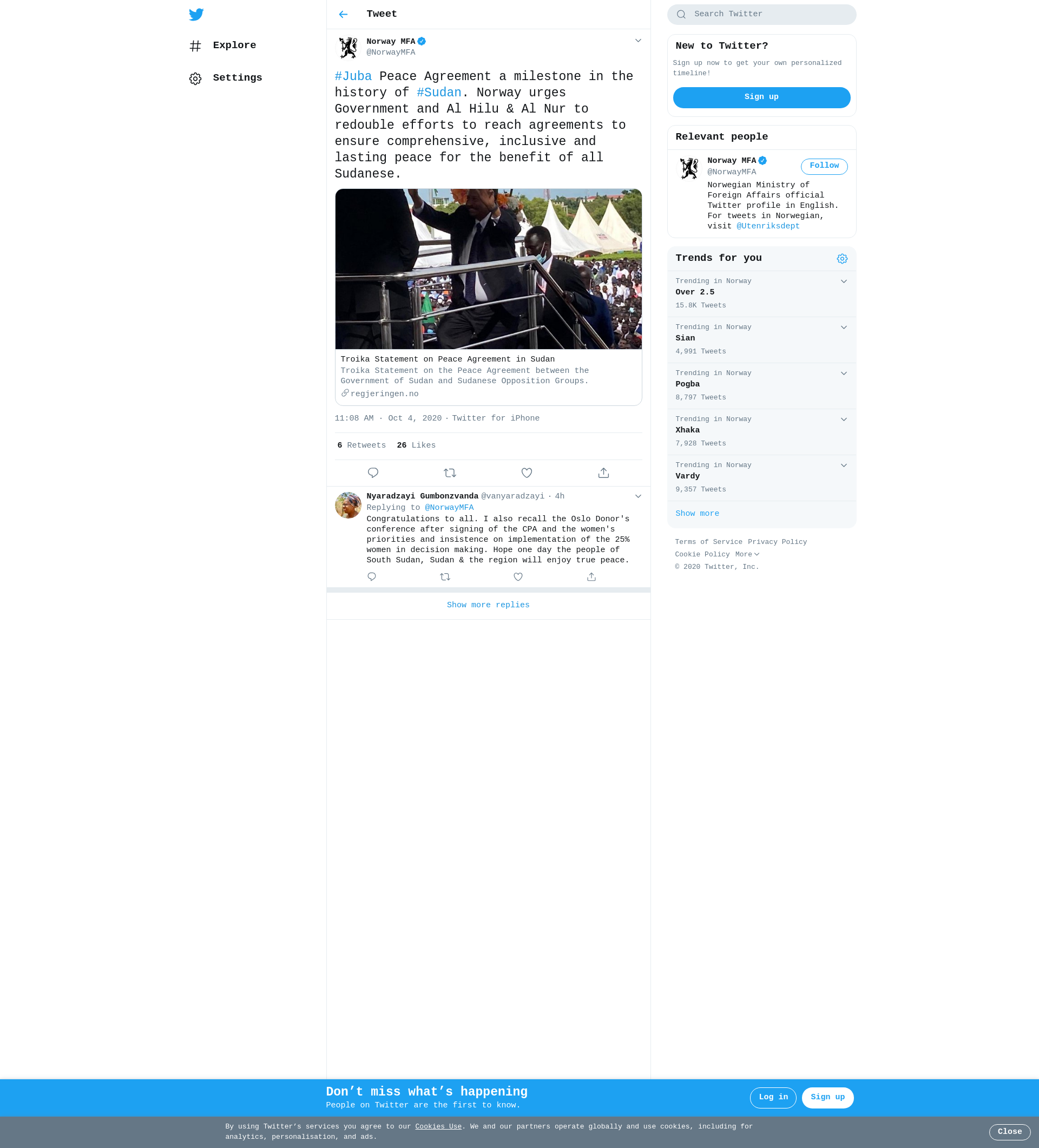 #Juba Peace Agreement a milestone in the history of #Sudan. Norway urges Government and Al Hilu & Al Nur to redouble efforts to reach agreements to ensure comprehensive, inclusive and lasting peace for the benefit of all Sudanese. https://t.co/ekr9Bi4XTh