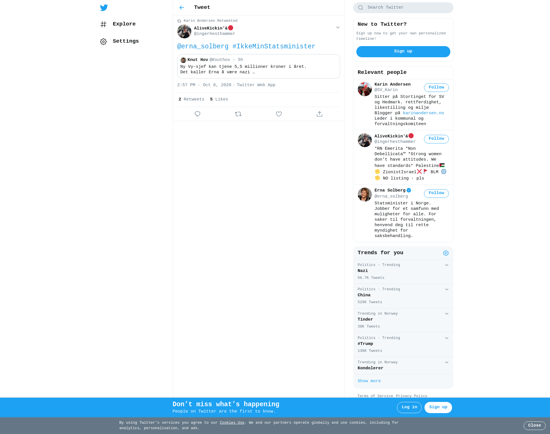 RT @ingerhesthammer: @erna_solberg #IkkeMinStatsminister
