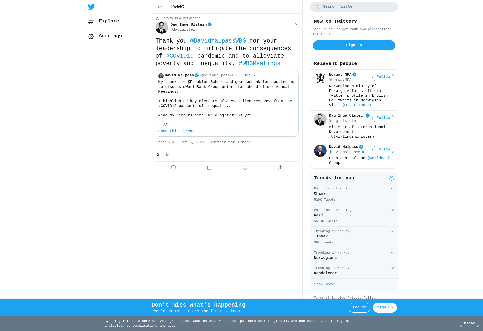 RT @dagiulstein: Thank you @DavidMalpassWBG for your leadership to mitigate the consequences of #COVID19 pandemic and to alleviate poverty and inequality. #WBGMeetings