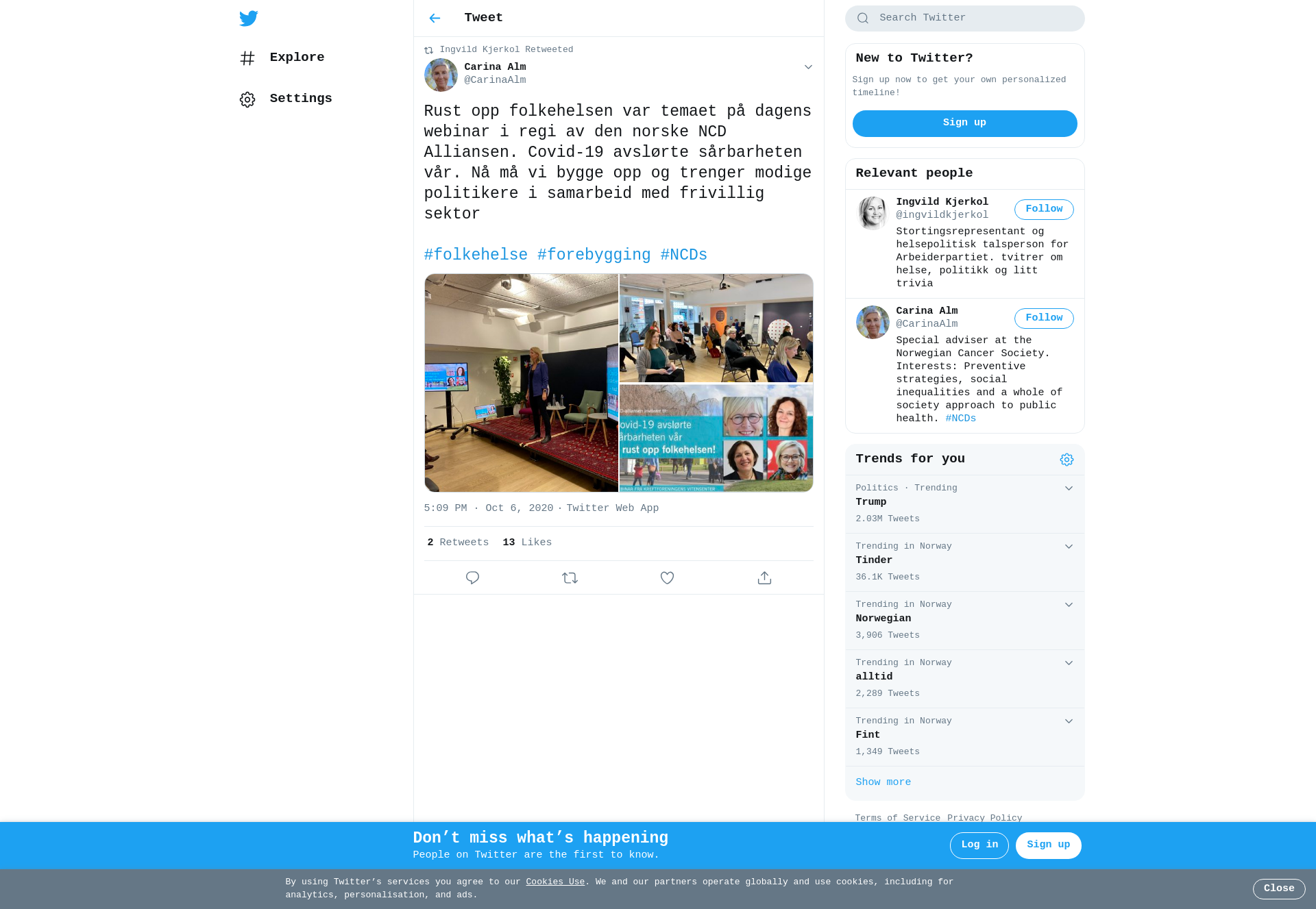 RT @CarinaAlm: Rust opp folkehelsen var temaet på dagens webinar i regi av den norske NCD Alliansen. Covid-19 avslørte sårbarheten vår. Nå må vi bygge opp og trenger modige politikere i samarbeid med frivillig sektor