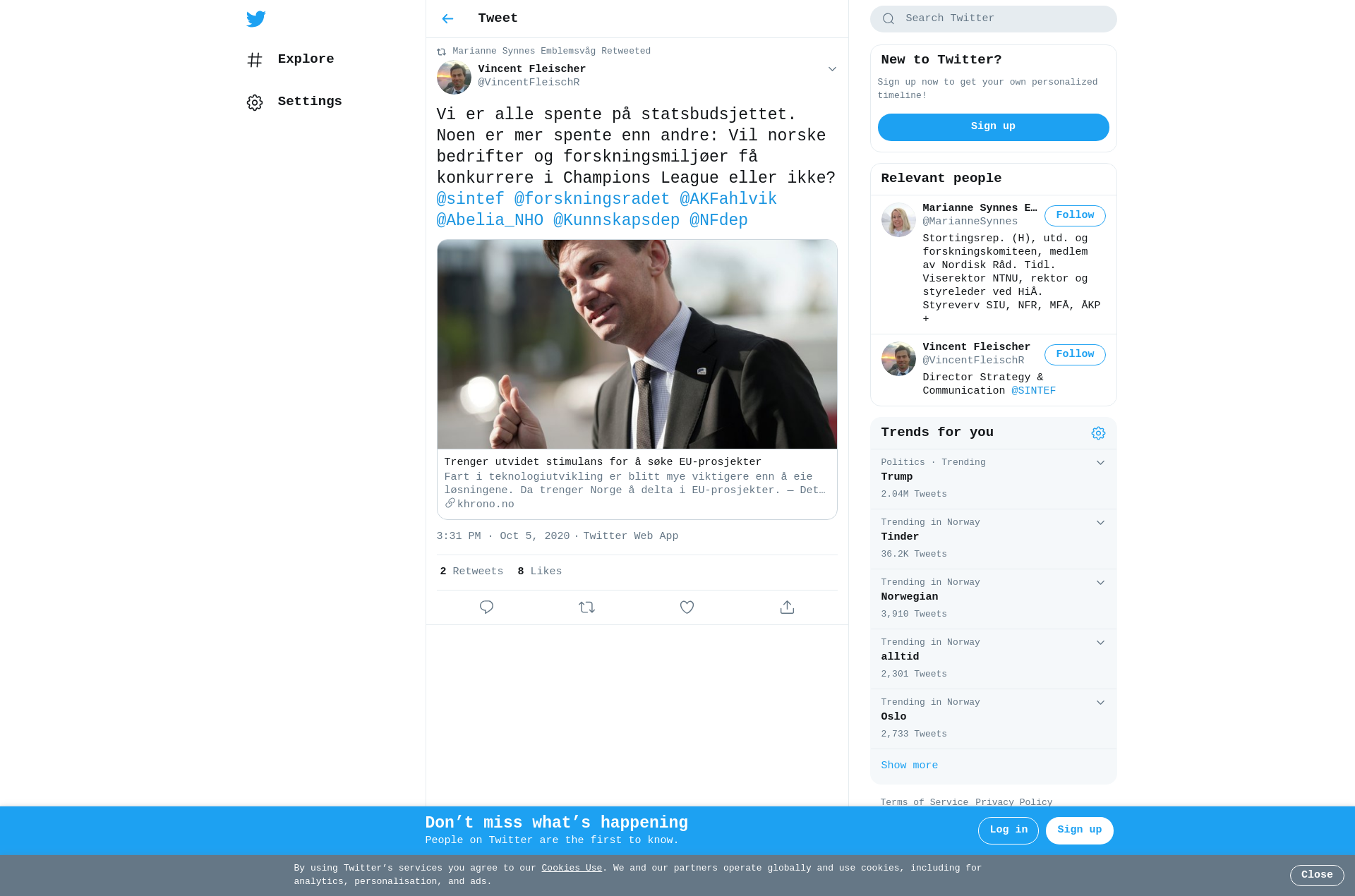 RT @VincentFleischR: Vi er alle spente på statsbudsjettet. Noen er mer spente enn andre: Vil norske bedrifter og forskningsmiljøer få konkurrere i Champions League eller ikke? @sintef @forskningsradet @AKFahlvik @Abelia_NHO @Kunnskapsdep @NFdep https://t.co/2g5oeel4RD